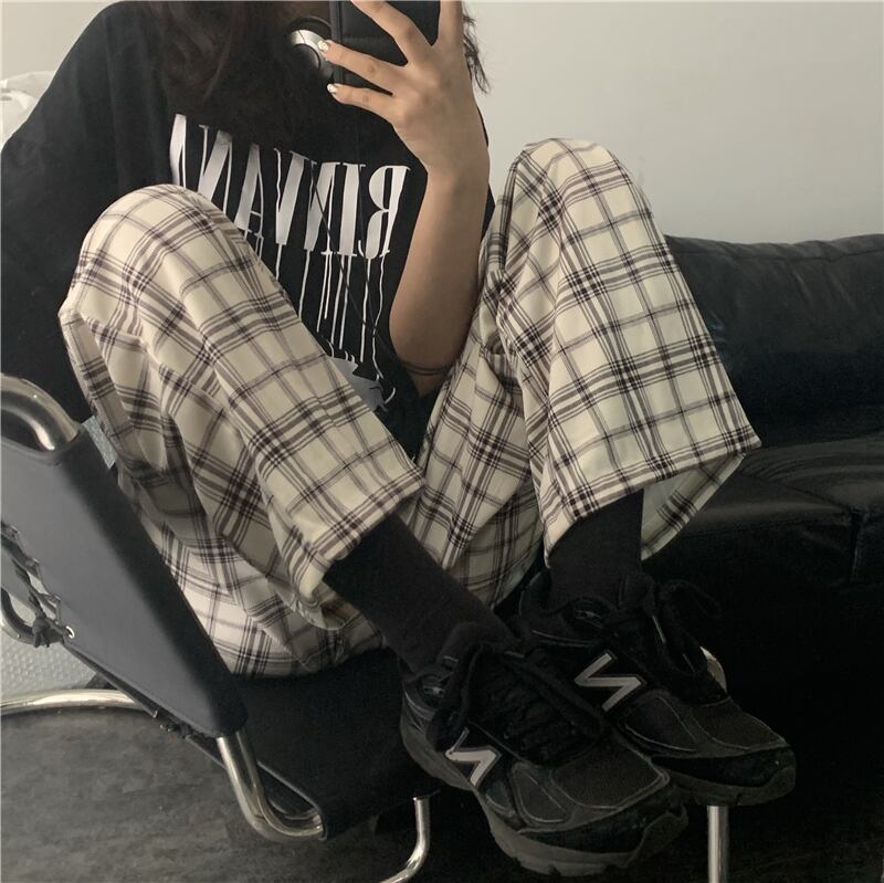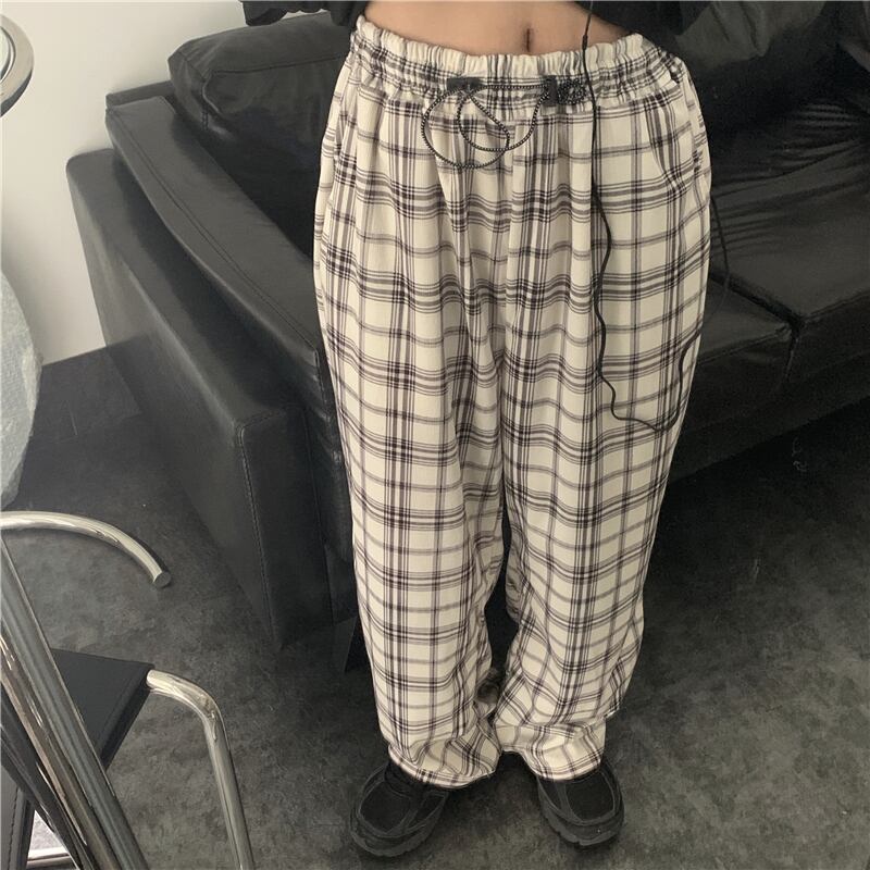 格子柄カジュアルパンツ 秋物韓国ファッションストレッチハイウェストウェストルーズ エラスティック 伸縮 オータム ウエスト CHIL39831728341