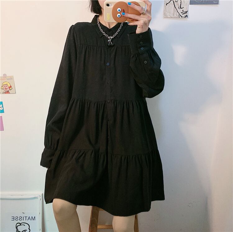 シャツ スカート スプリング韓国ファッションダークルーズワンピース 春物 スタイル CHIL43664567454