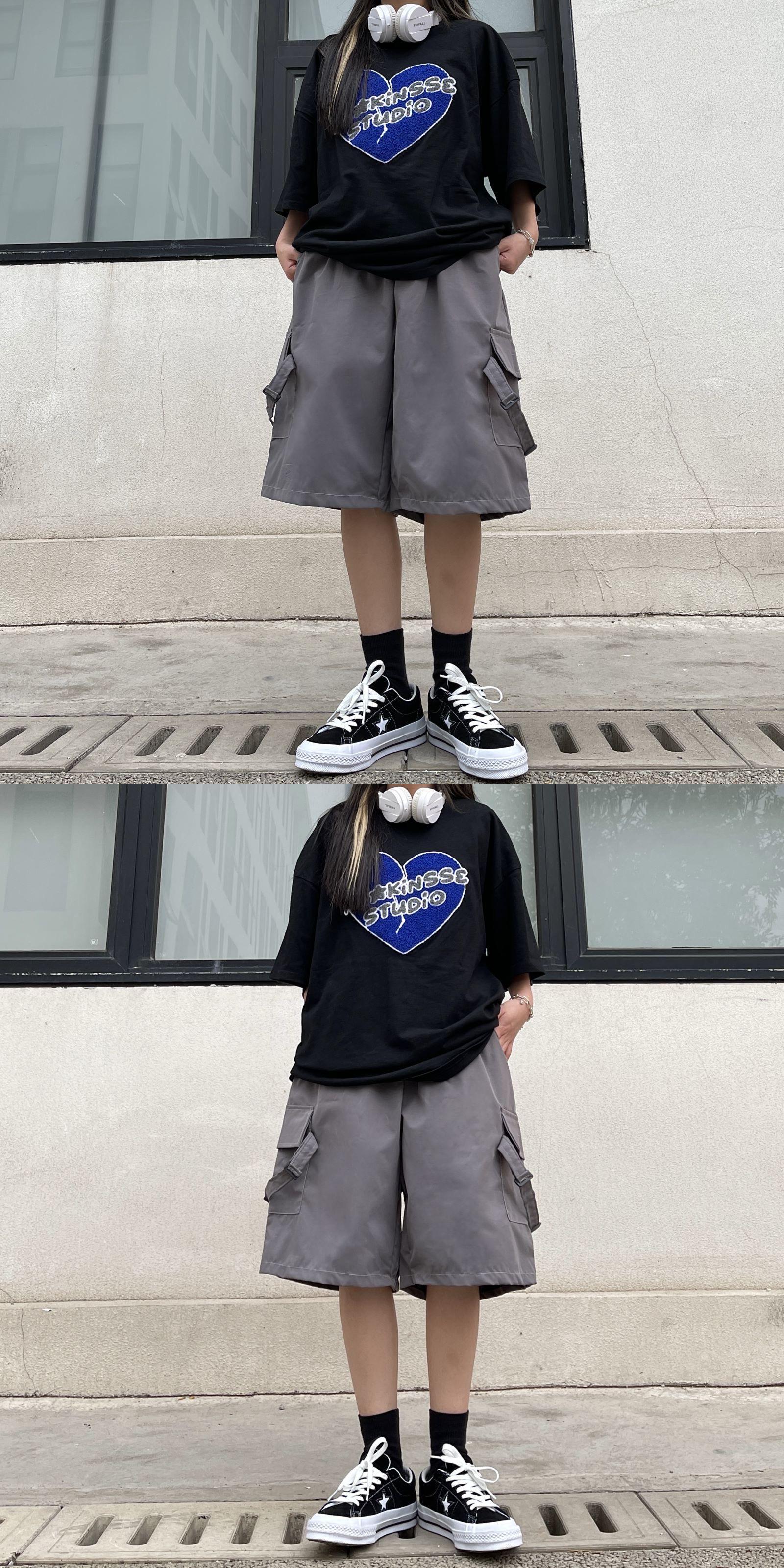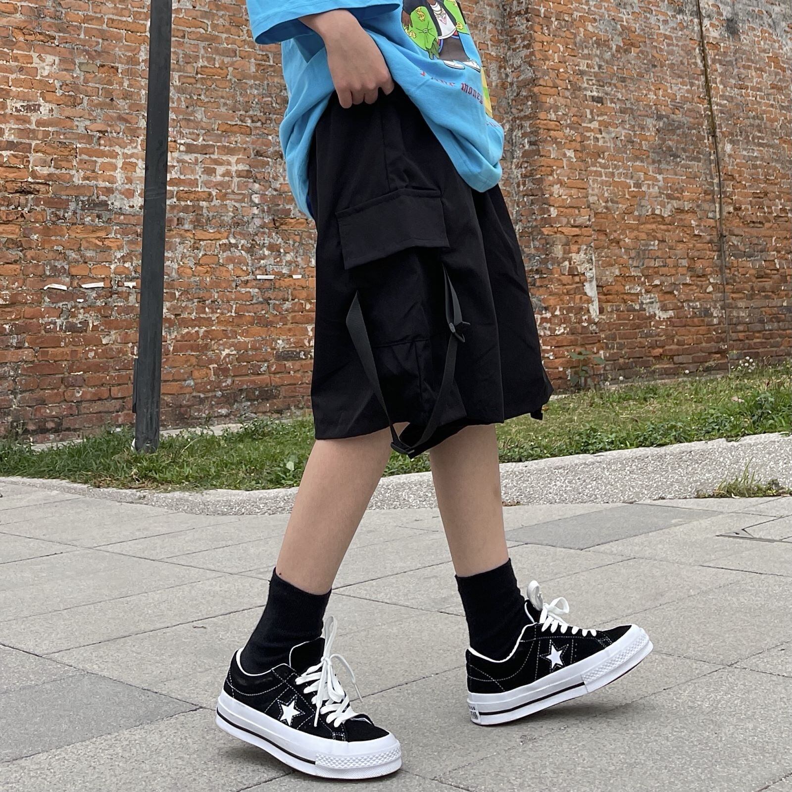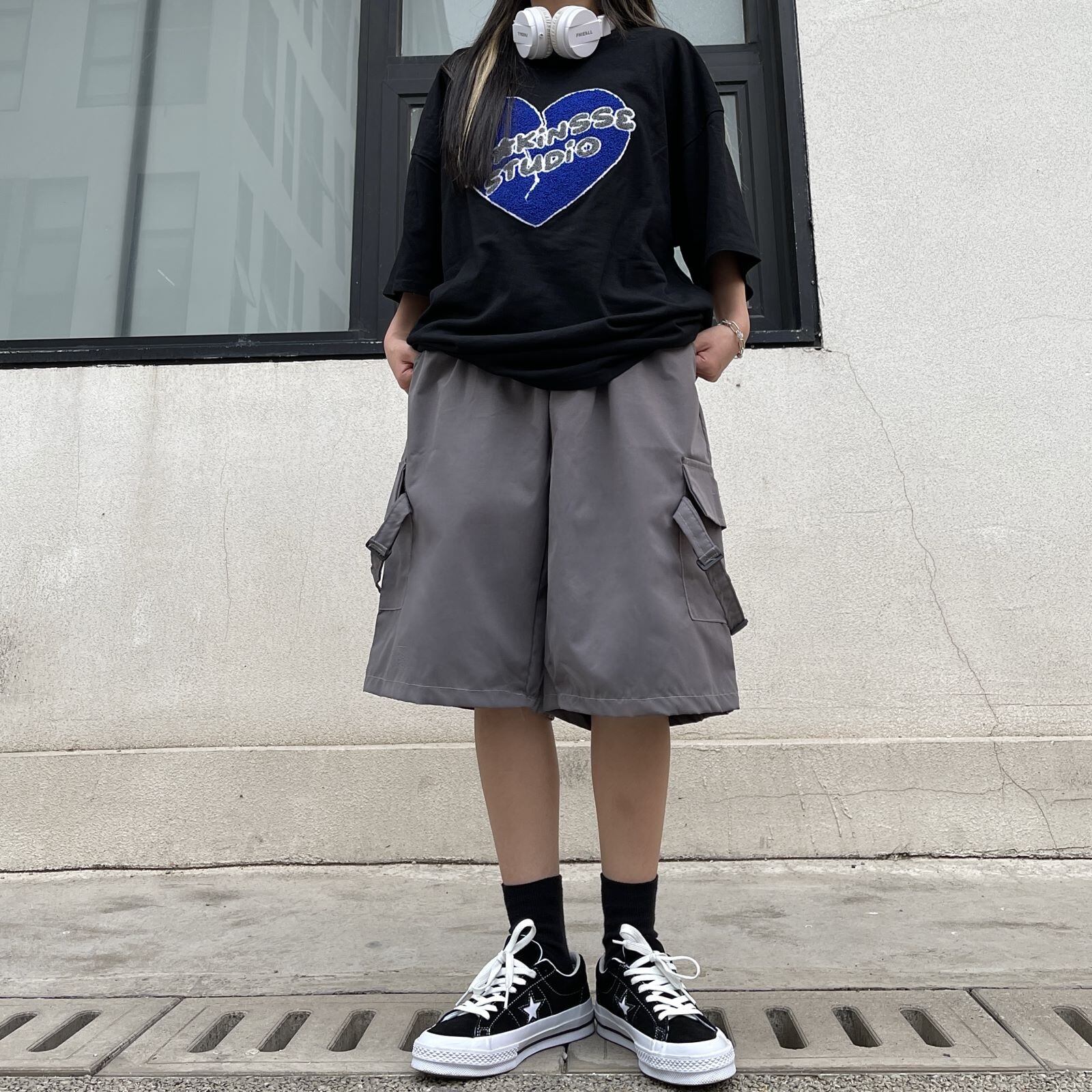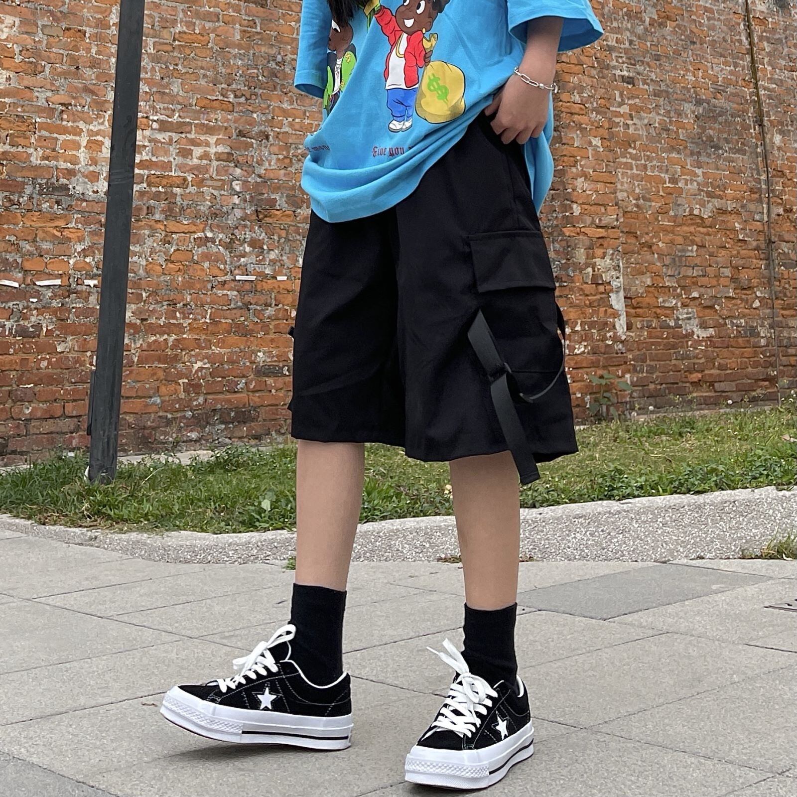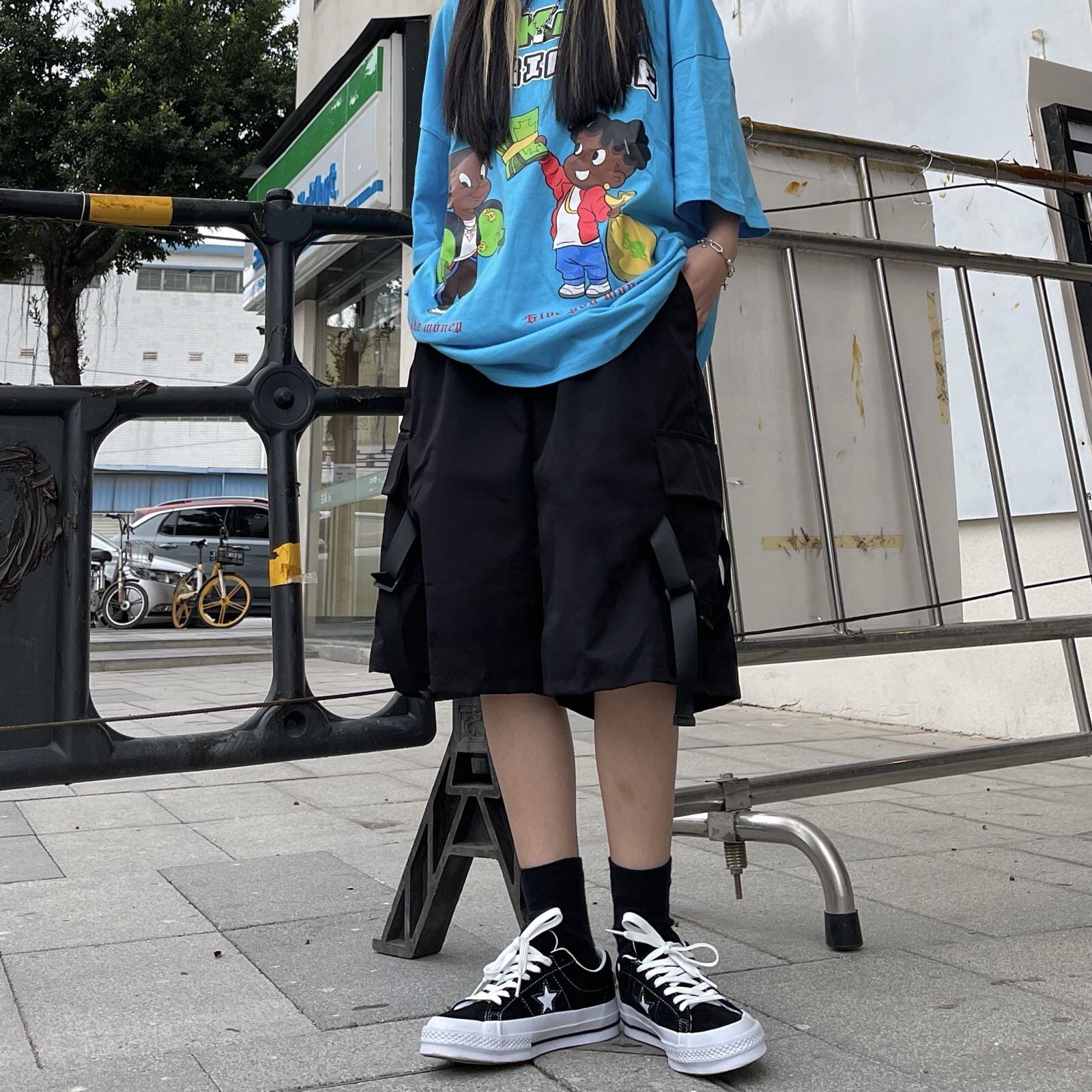 ショーツ レディース夏服韓国ファッショントレンドスタンダードブラックパンツ ルーズハイウェスト レトロ 夏物 ボーイズ スタイル ウエスト デーモン2287437033