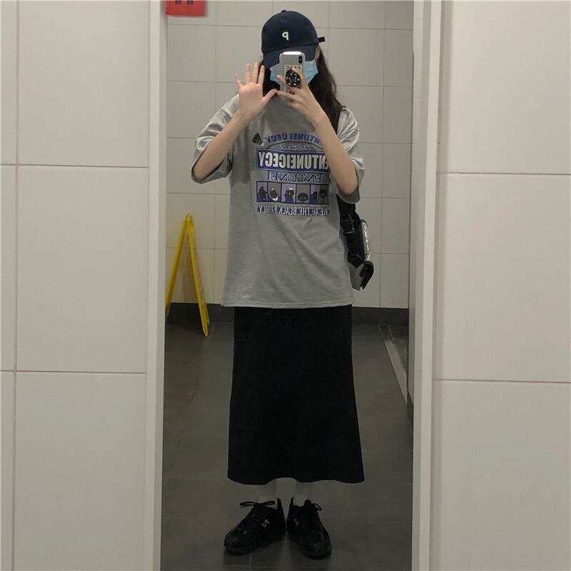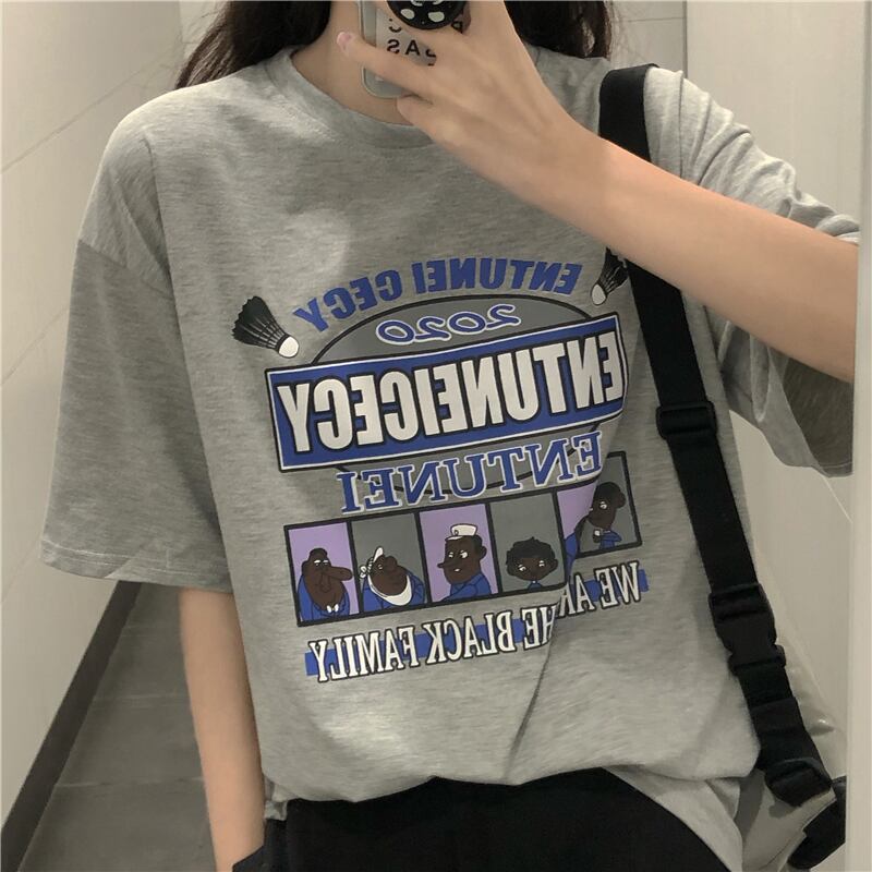 夏服Tシャツレディース韓国ファッショントレンドプリントルーズホワイトラウンドネックトップス 夏物 Oネック スタイル デーモン86005450556