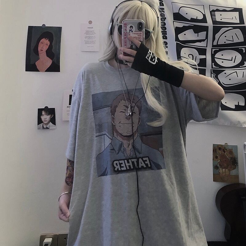 Tシャツレディース夏服韓国ファッショントレンドスタンダードプリントホワイトルーズトップス レトロ 夏物 スタイル デーモン66208109418
