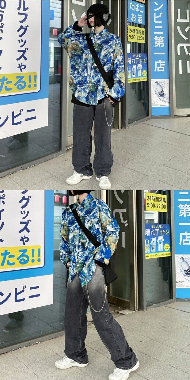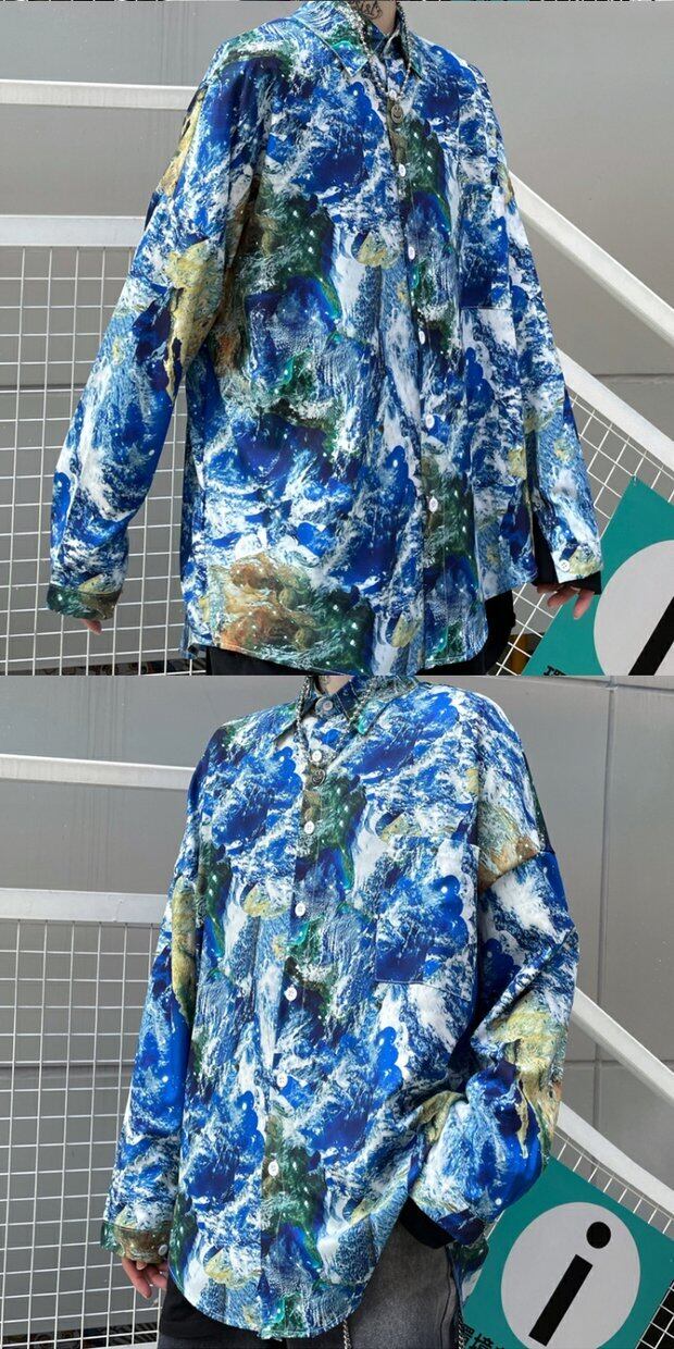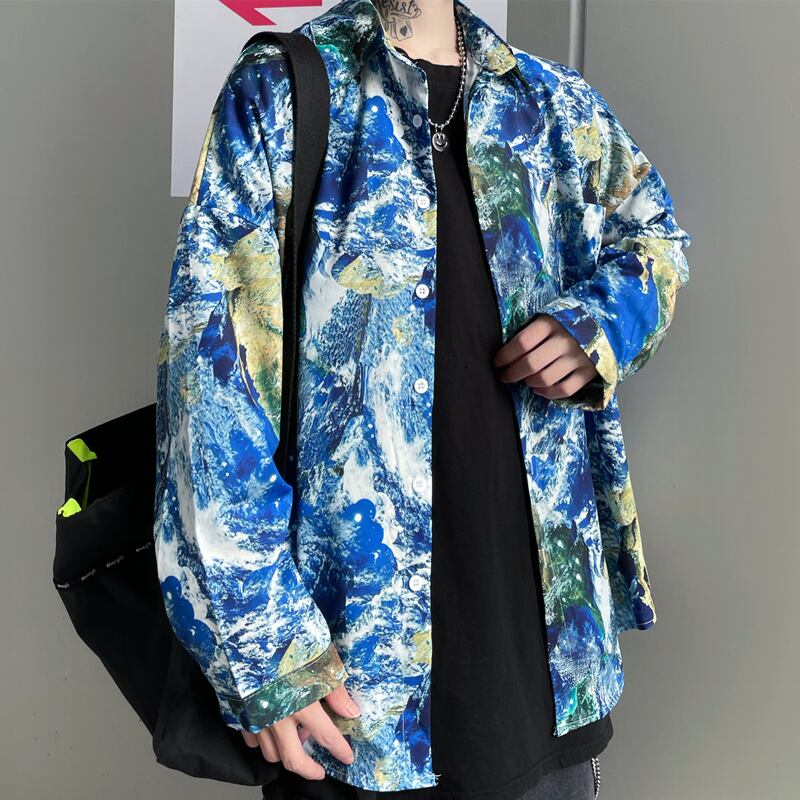 スプリングシャツ レディーストレンドスタイルスタンダードプリントルーズカジュアルジャケット ロング レトロ 春物 長袖 デーモン72530998485