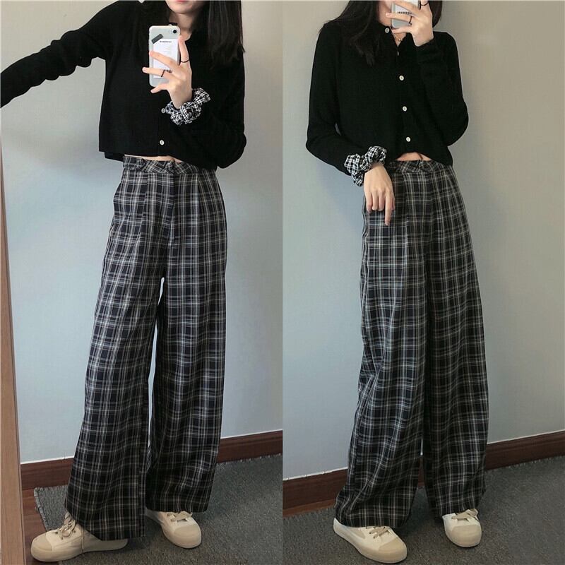 レディーススプリング韓国ファッションスタイルハイウェストウェスト格子柄パンツ カジュアルルーズカーディガン 春物 ウエスト デーモン86632245886