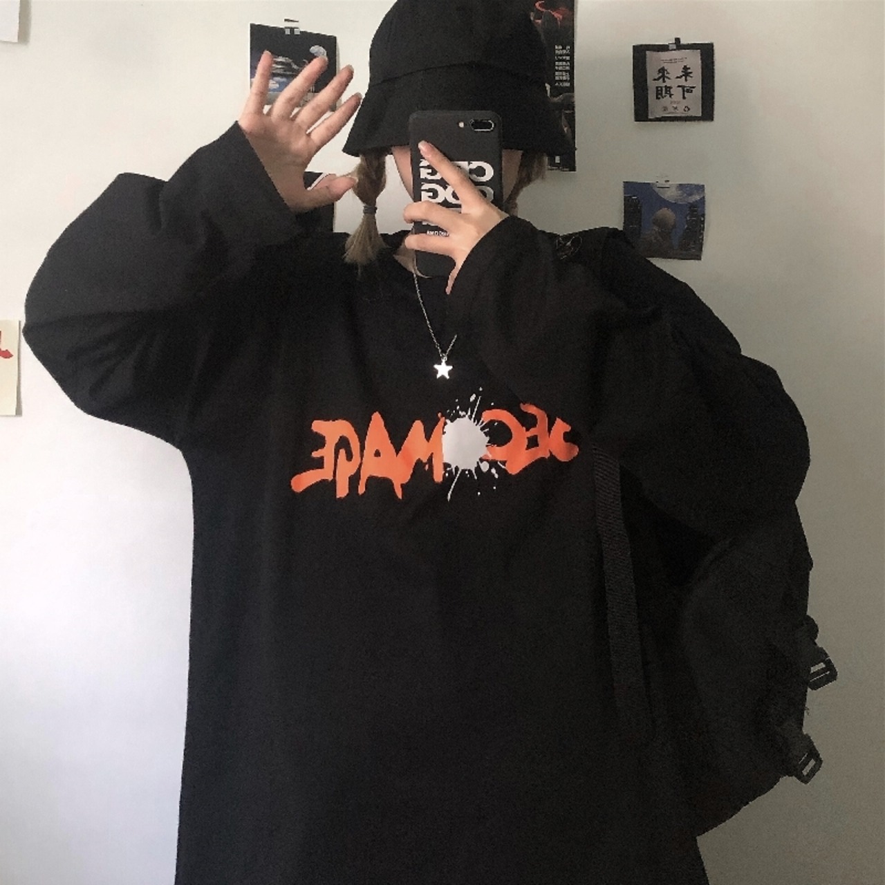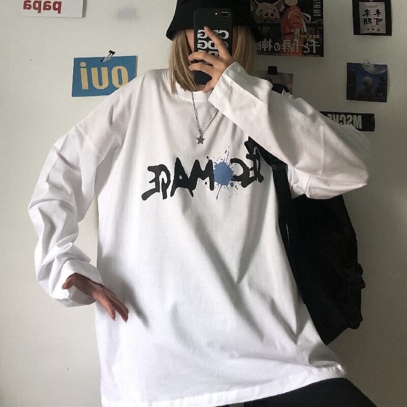 Tシャツシャツ レディーススプリング韓国ファッショントレンドスタンダードプリントルーズゆったりトップス ロング レトロ 春物 ボーイズ スタイル 長袖 デーモン75736353589