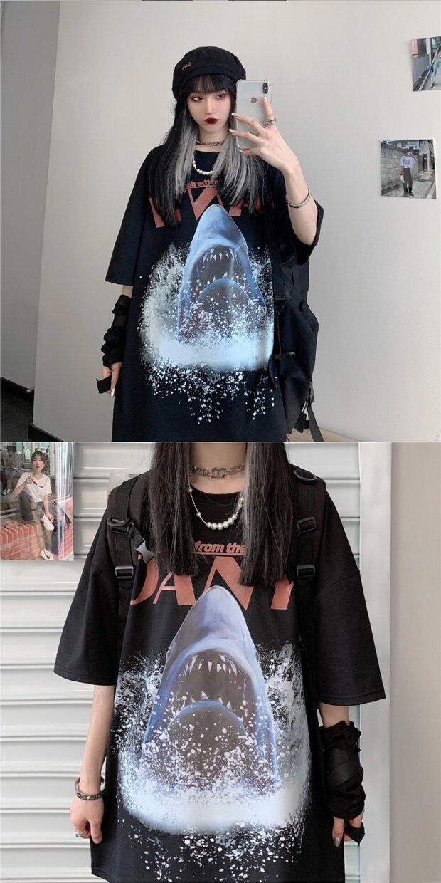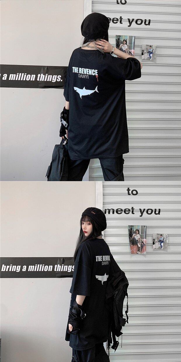 トップス スプリング韓国ファッショントレンドスタイルプリントルーズラウンドネックTシャツ 原宿 春物 Oネック ボーイズ デーモン38315949488