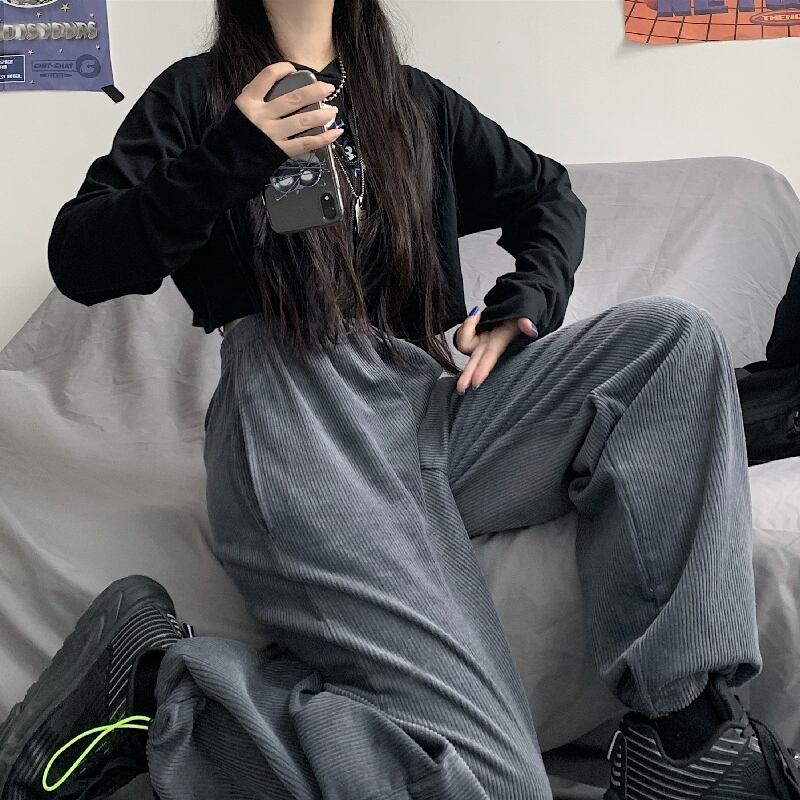 コーデュロイスプリングトレンドギャザーレギンス パンツ ハイウェストウェストルーズスリム 春物 ウエスト デーモン96381730335