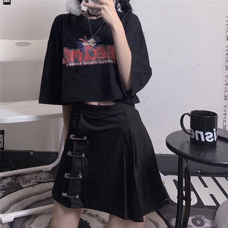 夏服ショートTシャツレディース韓国ファッショントレンドプリントブラックルーズトップス 夏物 スタイル デーモン25085782548