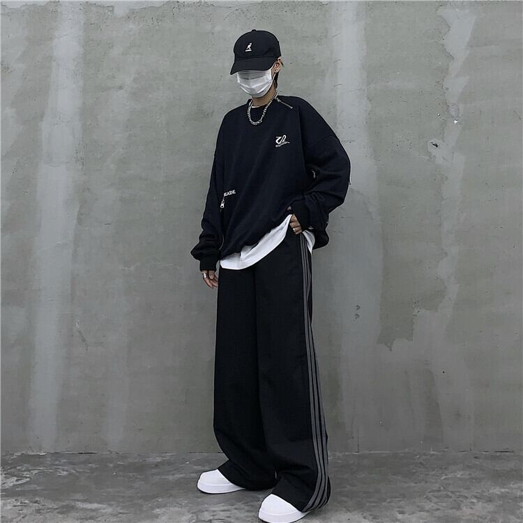 カジュアルパンツ レディーススプリングトレンドストライプルーズグレー 春物 ボーイズ デーモン62041215777