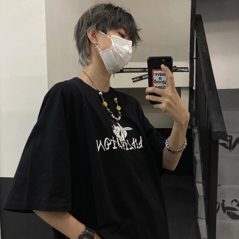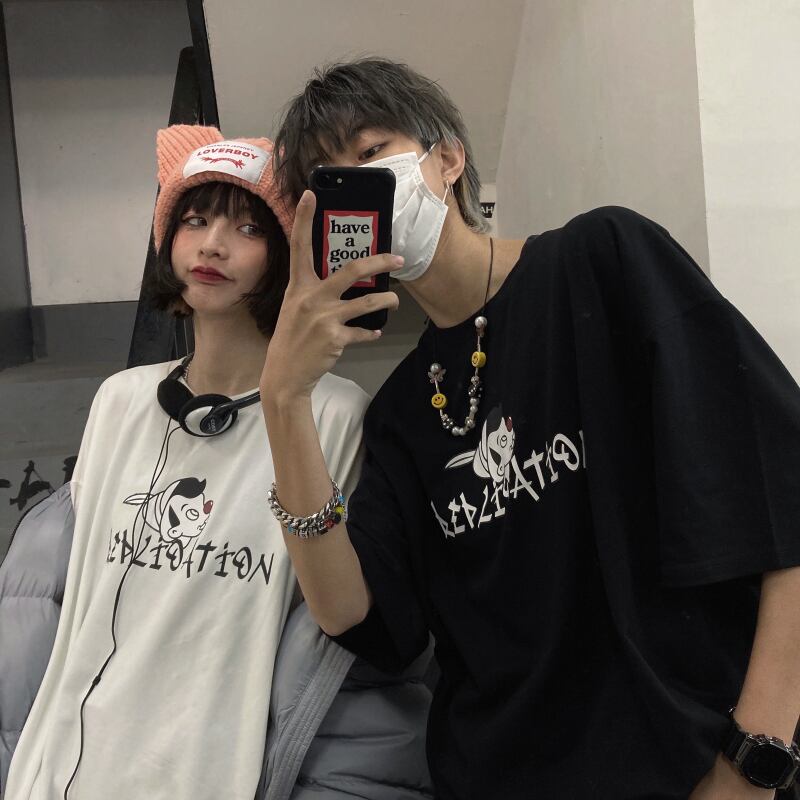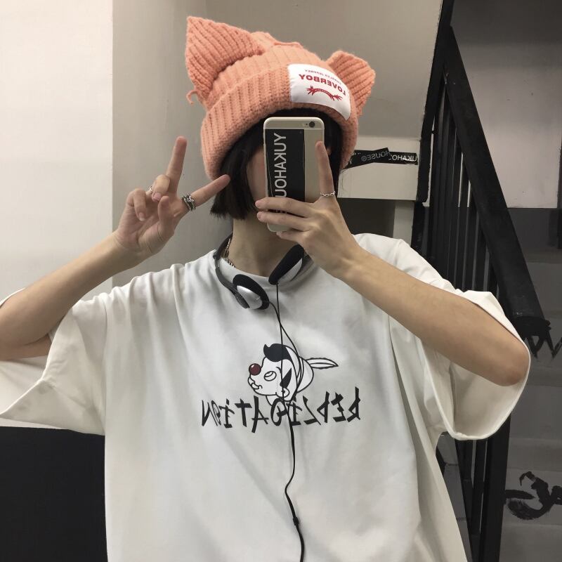 ホワイトTシャツシャツ 夏服韓国ファッショントレンドスタンダードプリント柄ルーズゆったり レトロ 夏物 スタイル デーモン7198579701