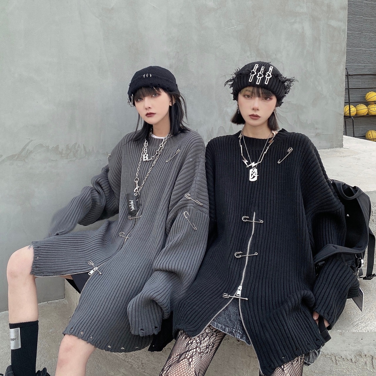 セーター レディーススプリング韓国ファッショントレンドジッパーラウンドネックルーズコート 春物 Oネック スタイル デーモン9627336957