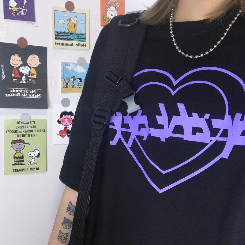 Tシャツレディース夏服韓国ファッショントレンドプリントルーズブラックトップス 夏物 スタイル デーモン32340071000