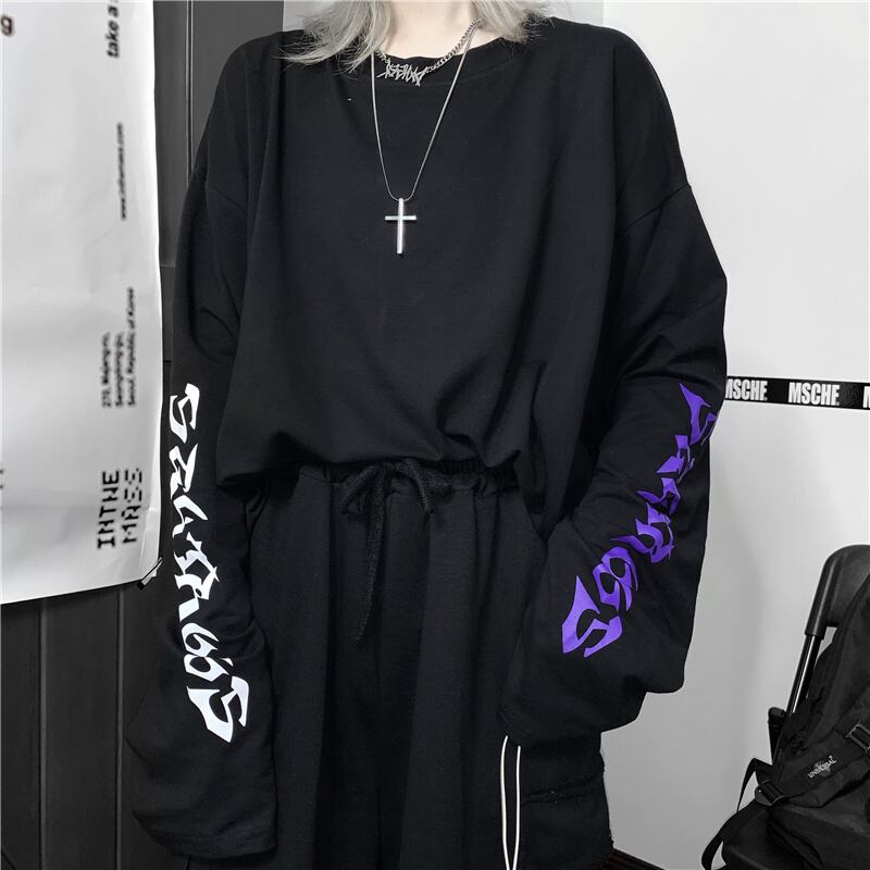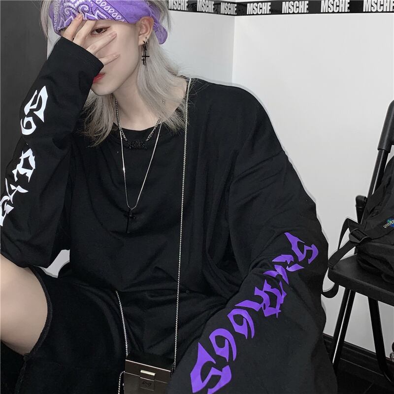 ゆったりシャツ レディーススプリング韓国ファッショントレンドスタイルルーズラウンドネックTシャツトップス ロング 原宿 春物 Oネック 長袖 デーモン64695255994