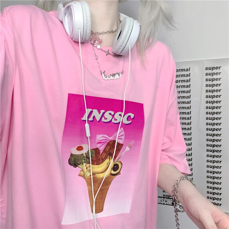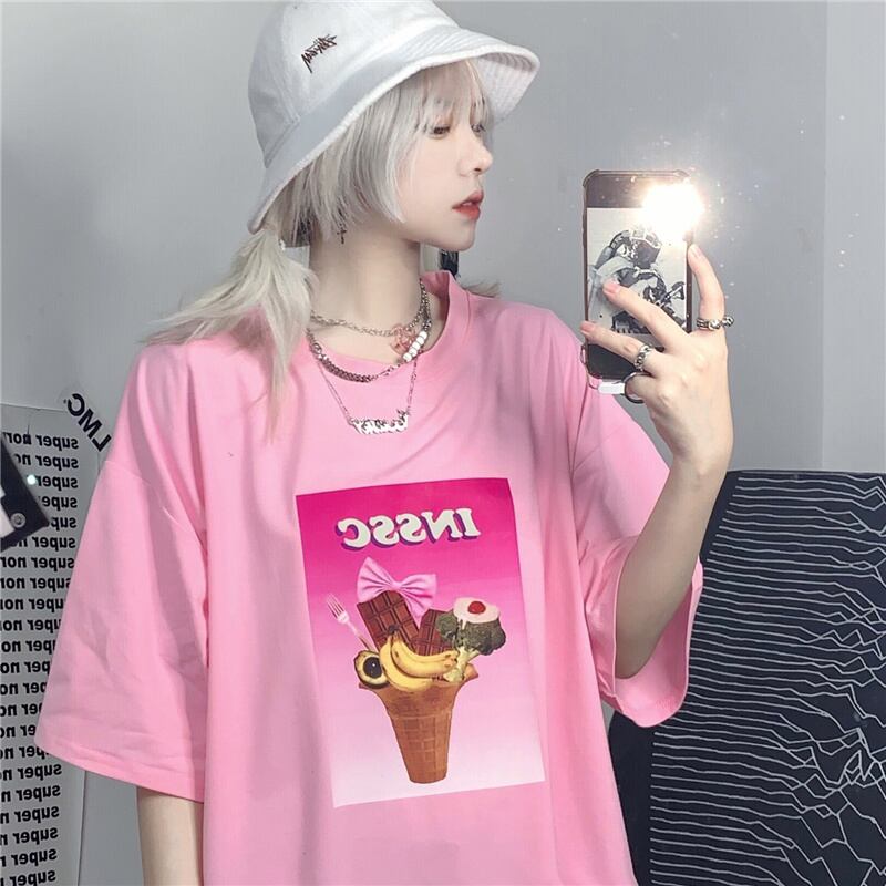 ブラウス レディーススプリング韓国ファッショントレンドプリントルーズTシャツ ピンク 大人ガーリー スウィート キュート カジュアル 春物 スタイル デーモン39627052167
