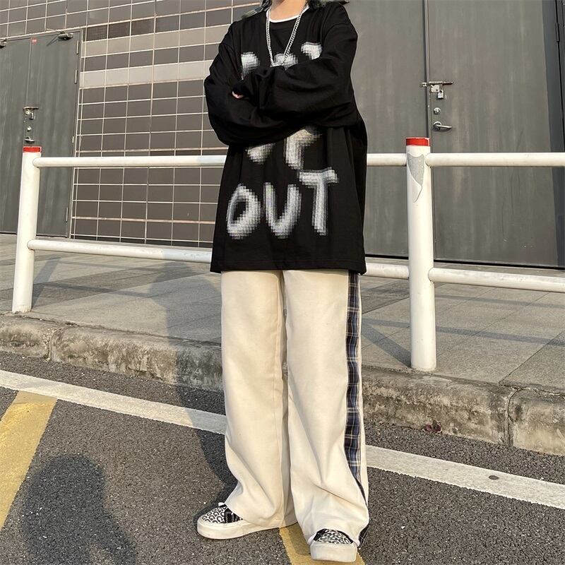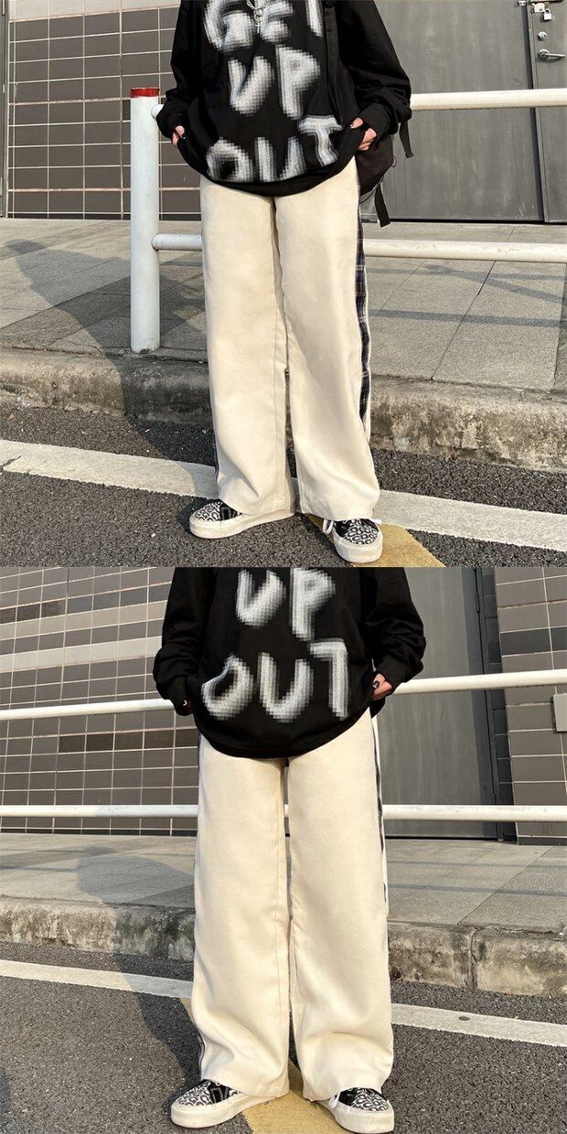 パンツ レディーススプリングトレンドワイドレッグハイウェストウェストルーズ薄手 ストリート 春物 ワイドパンツ ステッチ ボーイズ ウエスト デーモン96078560577