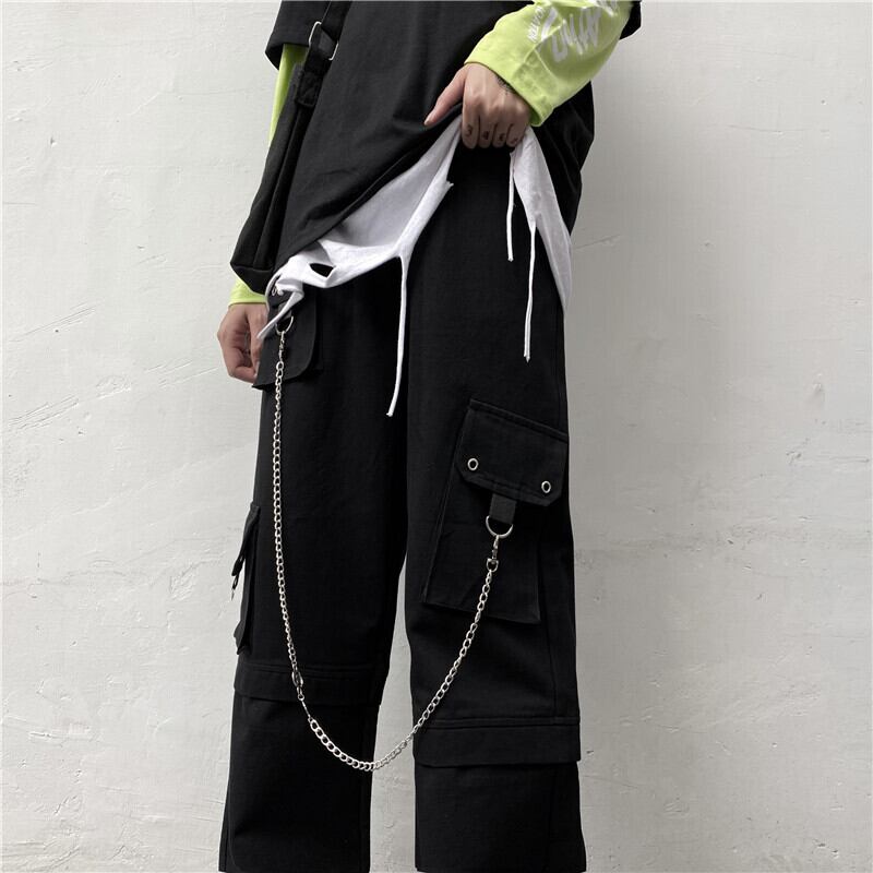 ブラックパンツ レディーススプリングトレンドチェーン ルーズカジュアル 春物 ステッチ ボーイズ デーモン85300481254