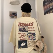 人気Tシャツレディース夏服韓国ファッショントレンドプリントルーズホワイトトップス 原宿 夏物 ボーイズ スタイル デーモン84746942506