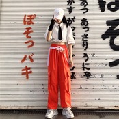 パンツレディース夏服韓国ファッショントレンドスタンダードオレンジルーズ レトロ 夏物 ステッチ スタイル デーモン7965594