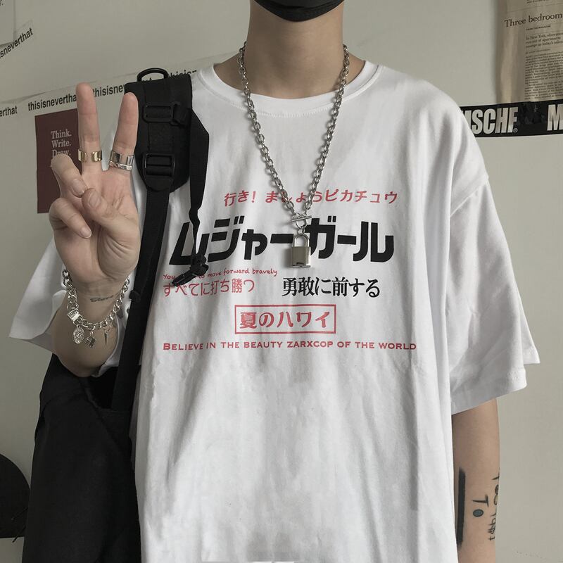 ホワイトTシャツレディース夏服韓国ファッショントレンドプリントルーズ半袖スリーブトップス ショート ハーフスリーブ 夏物 ボーイズ スタイル デーモン7687485