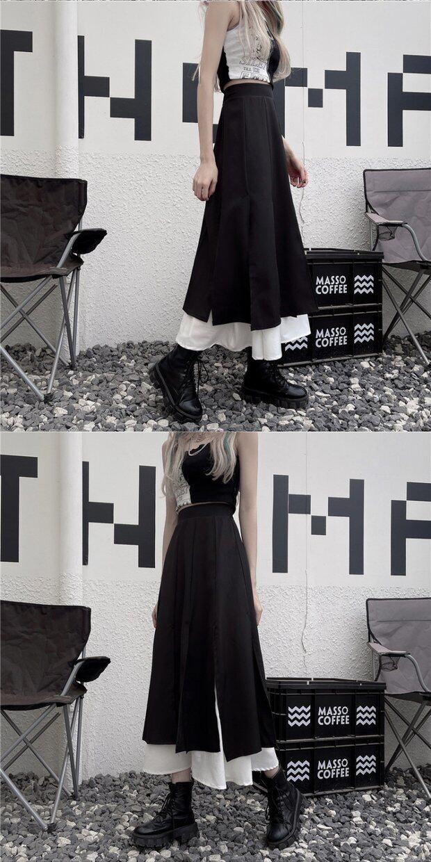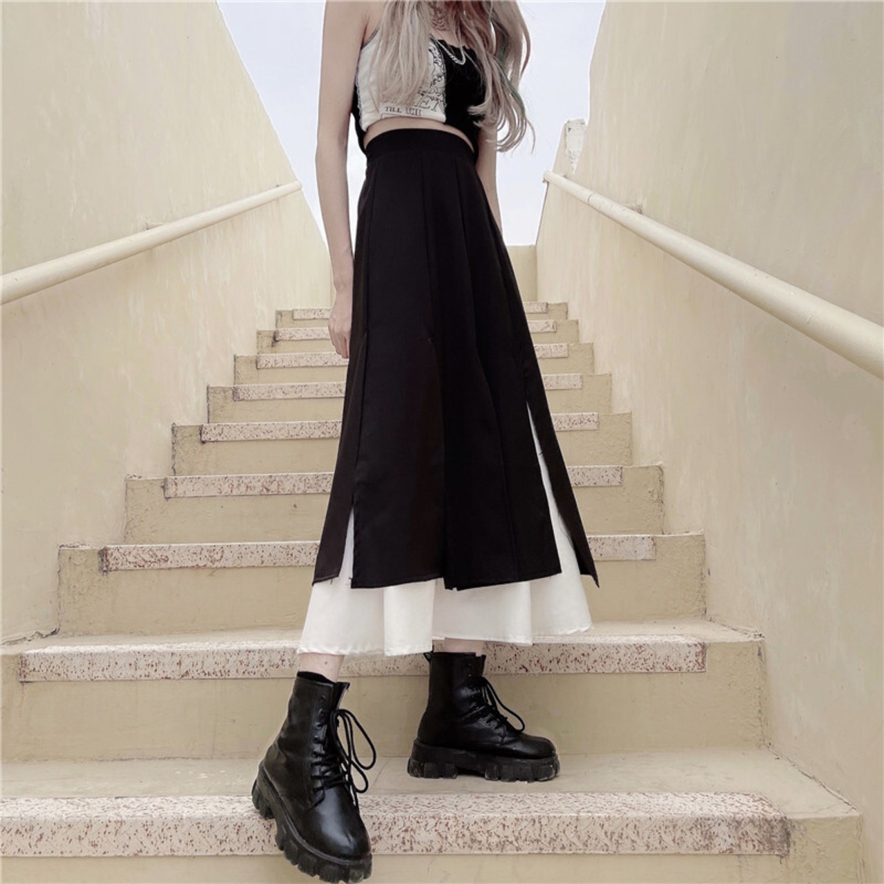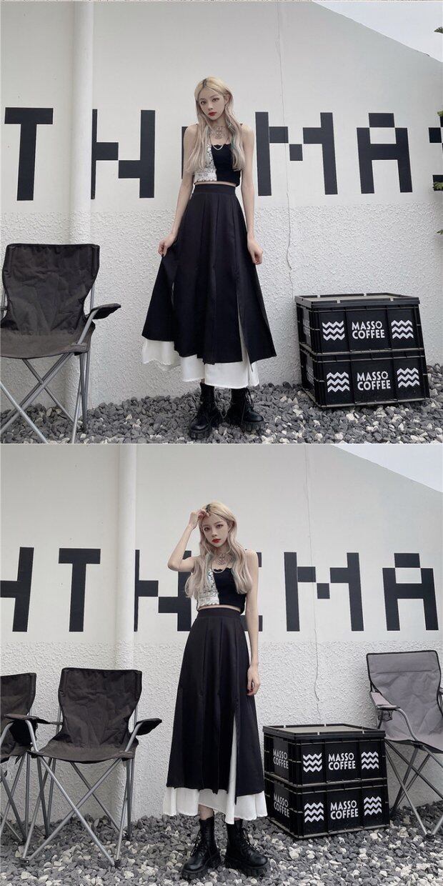 ウェストスカート レディース夏服トレンドAライン薄手 夏物 ステッチ ウエスト ミドル丈 デーモン77571047042