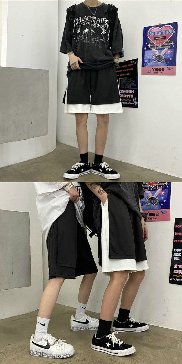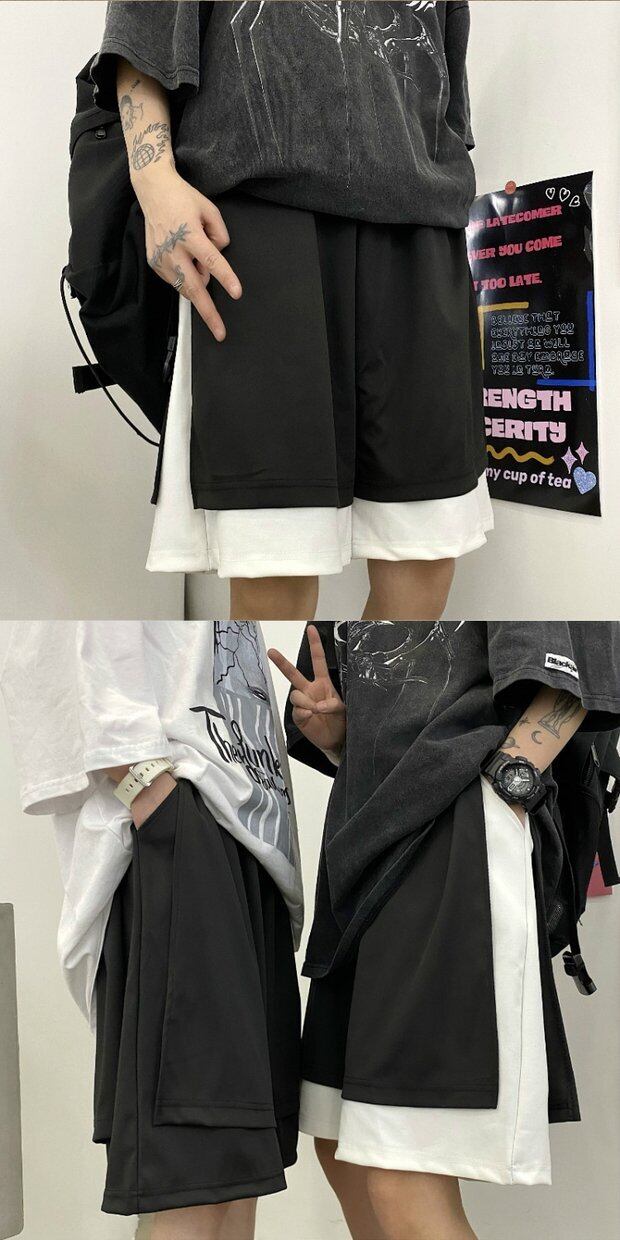 ショーツ レディーススプリングトレンドパンツ ブラックルーズカジュアル ストリート 春物 ステッチ デーモン67192054178