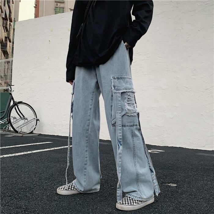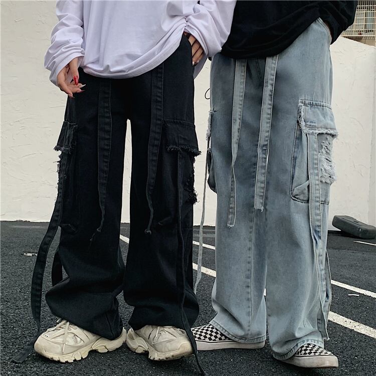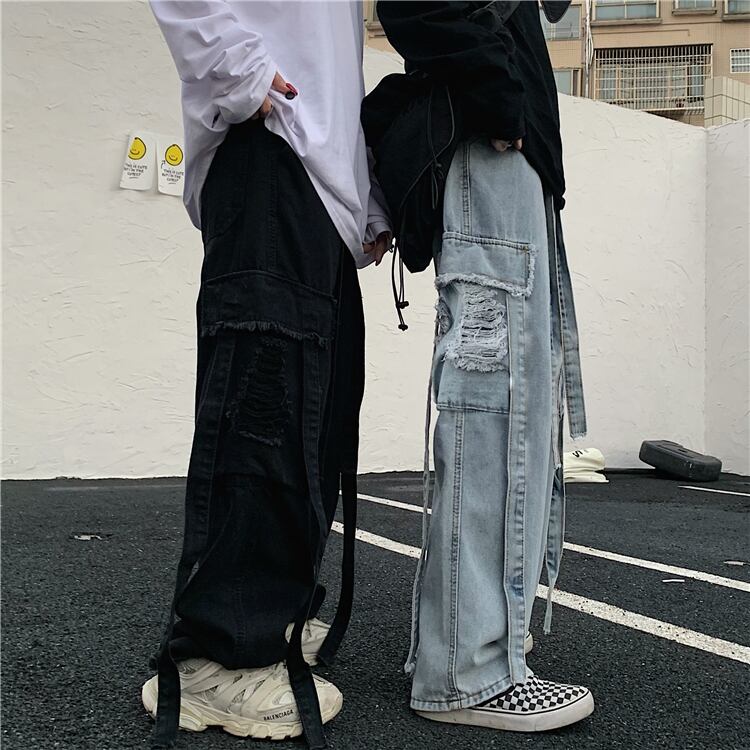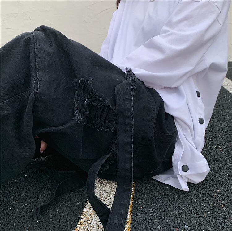 ジーンズ レディーススプリングトレンドスタイルルーズ薄手ブラックパンツ 原宿 春物 デーモン25853641340