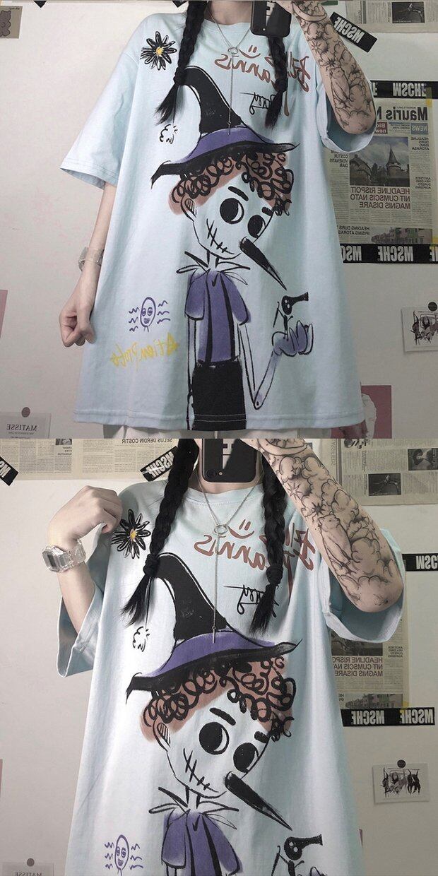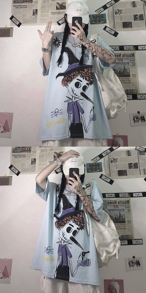 トップス 夏服レディース韓国ファッショントレンドプリントルーズTシャツ 夏物 スタイル デーモン97667710595