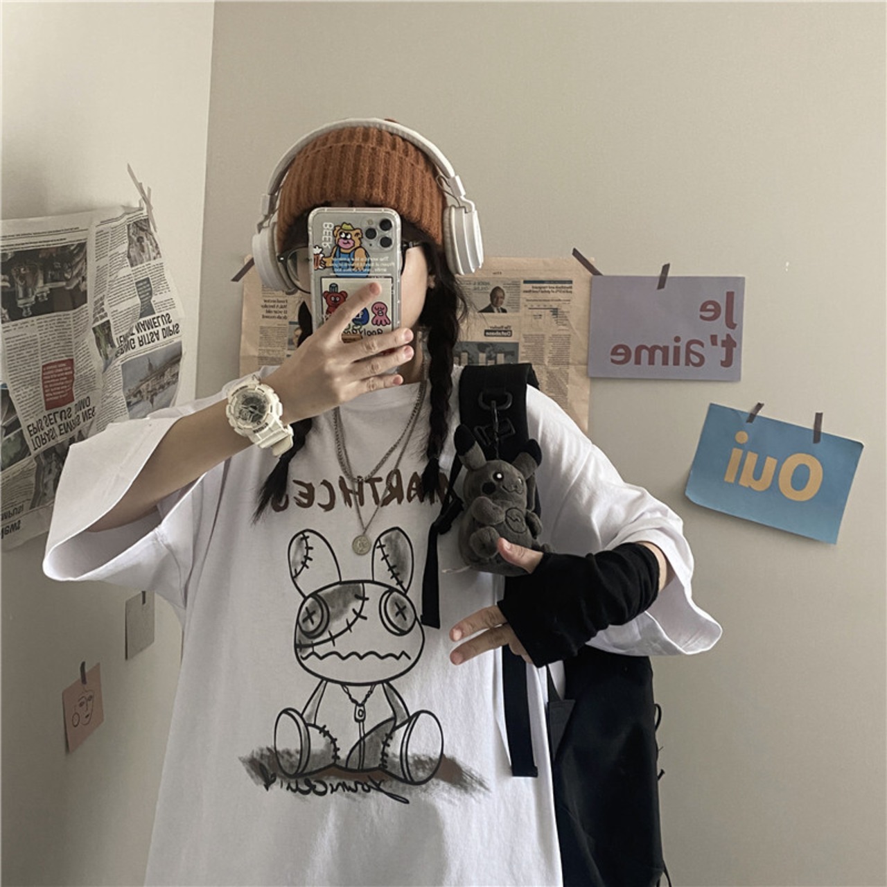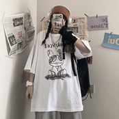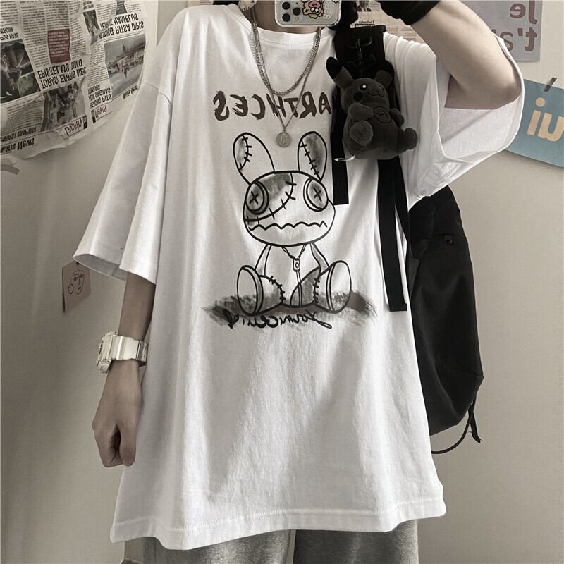 Tシャツ夏服レディース韓国ファッショントレンドホワイトルーズプリントトップス 夏物 ボーイズ スタイル デーモン24560986132