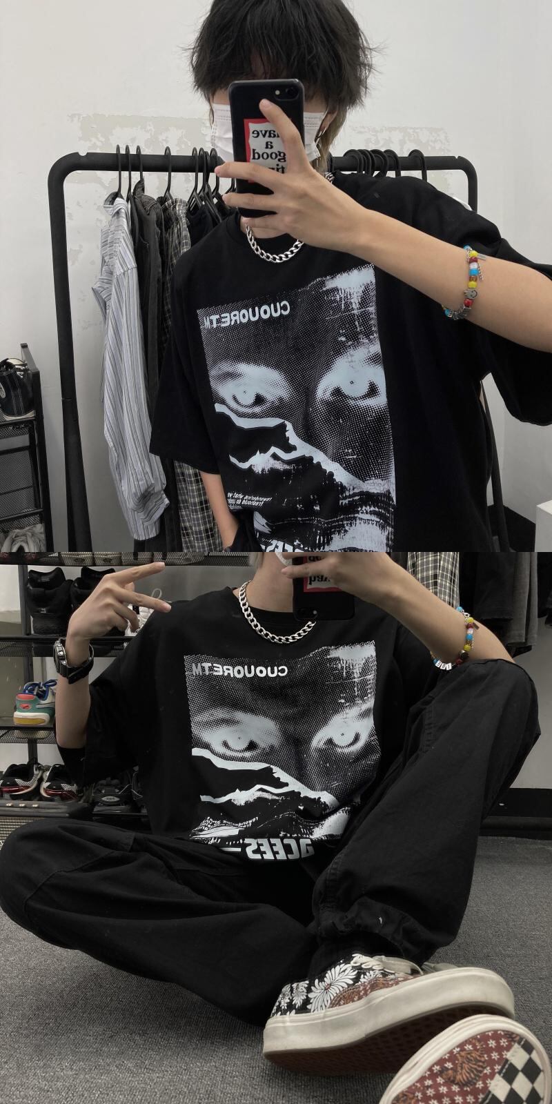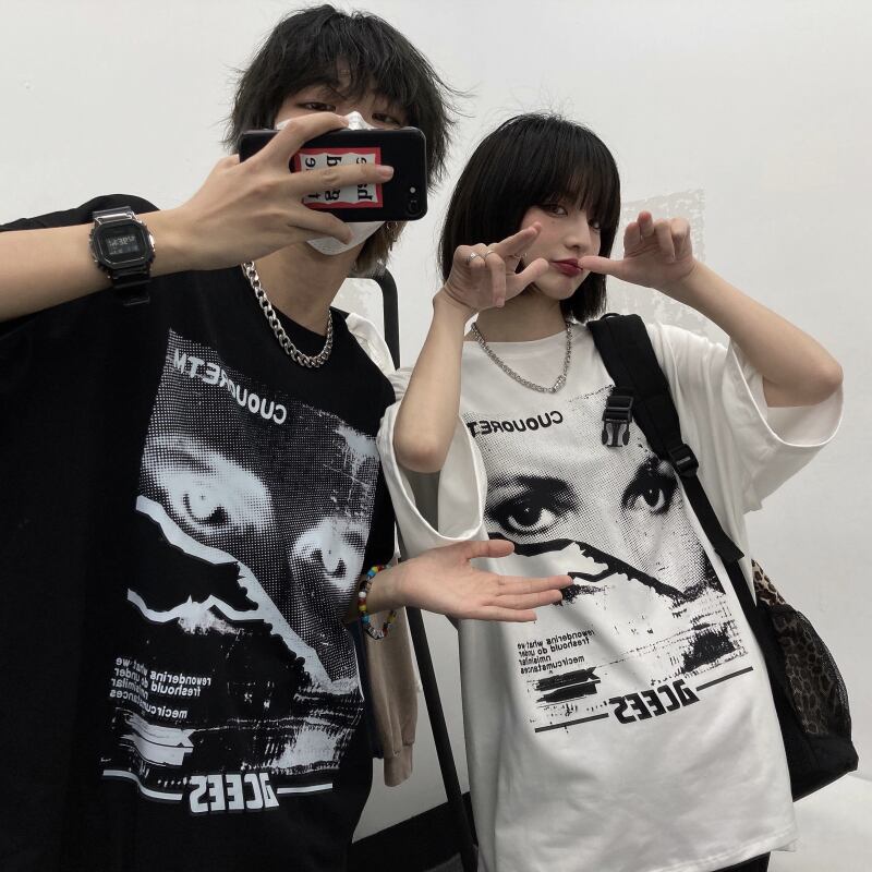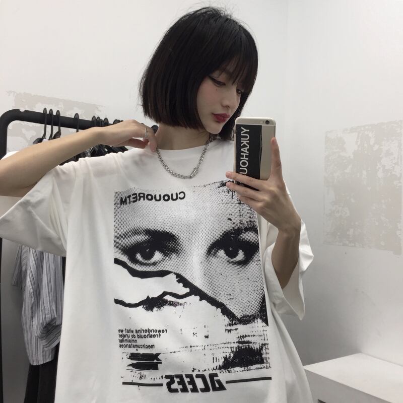ホワイトTシャツレディース夏服韓国ファッショントレンドスタンダードプリントルーズトップス レトロ 夏物 スタイル デーモン51129274900