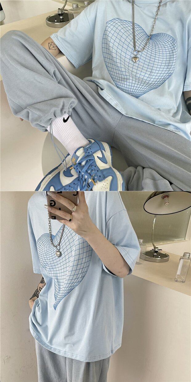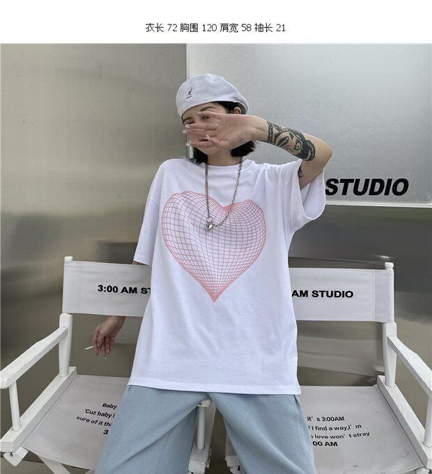 スタイルTシャツレディース夏服韓国ファッショントレンドプリントホワイトルーズトップス 原宿 夏物 ボーイズ デーモン84090331003