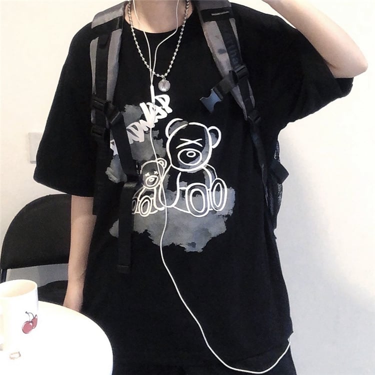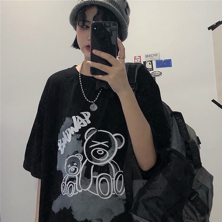 ブラックTシャツレディース夏服韓国ファッショントレンドスタンダードプリント柄ルーズトップス レトロ 夏物 スタイル デーモン63628198006