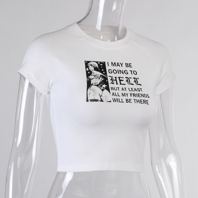ダークプリント柄スプリング夏服クロップドラウンドネックTシャツレディース 春物 夏物 Oネック ヨーロピアン YU63893944718