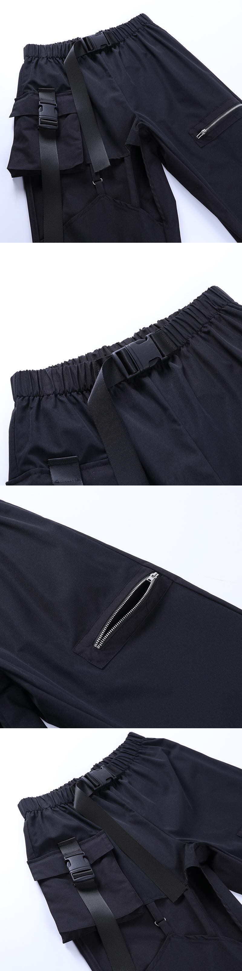 パンツルーズジッパーベルト 薄手カジュアルパンツ ハーネス ポケット多め マルチポケット YU78876508749