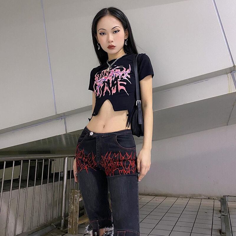 Tシャツレディーススプリング夏服スタイルトップス レッド ストリート 春物 夏物 ヨーロピアン YU85486053021