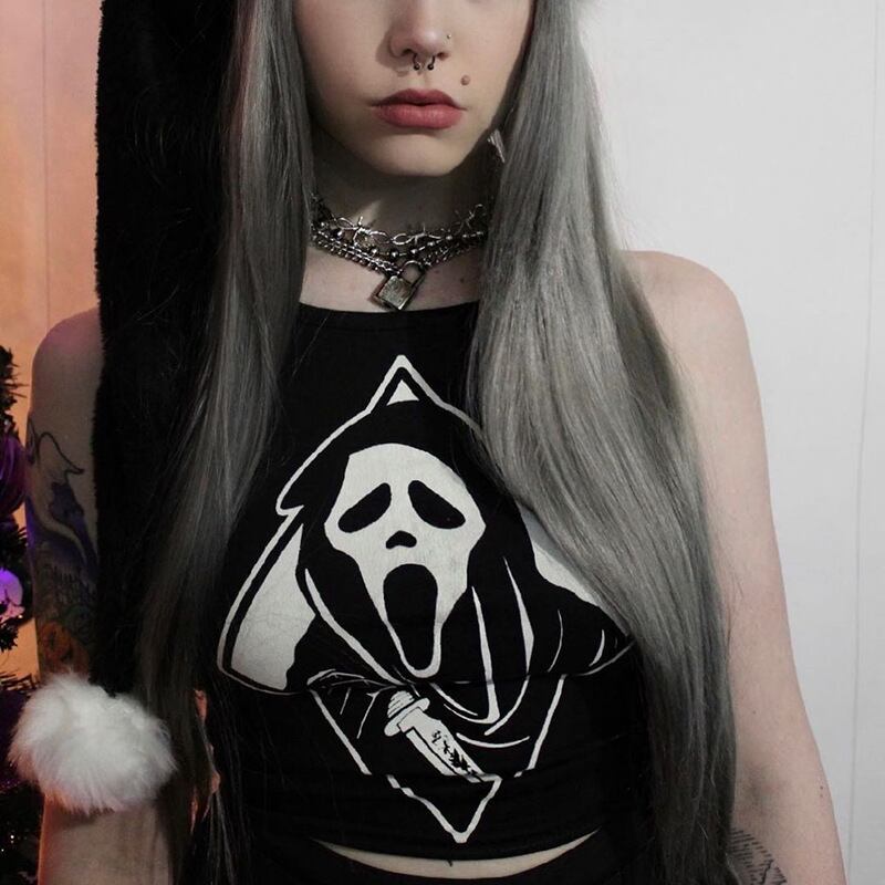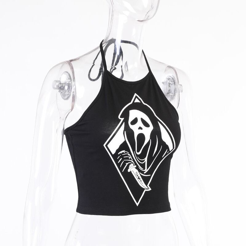 ダークプリント柄ホルタートップス タンクトップ ストリート スプリング 春物 夏物 ヨーロピアン YU3640757962