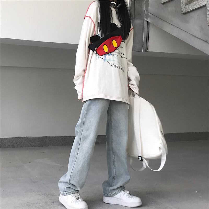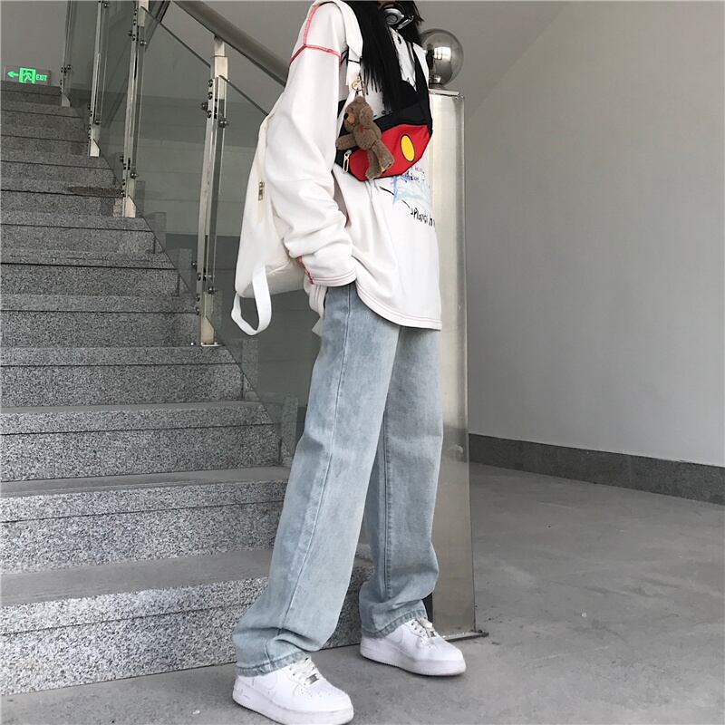 ブルースプリングトレンドカジュアル薄手パンツ ルーズハイウェスト 春物 ウエスト デーモン58798754624