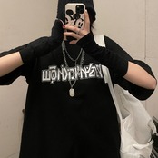 ホワイトTシャツレディーススプリング韓国ファッショントレンドスタイルプリントルーズトップス 原宿 春物 ボーイズ デーモン28301378440