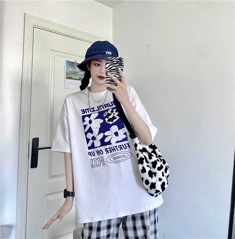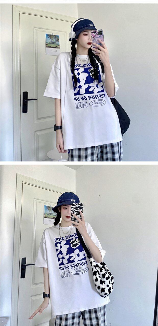 Tシャツレディーススプリング韓国ファッショントレンドプリントルーズラウンドネックカジュアルトップス 春物 Oネック スタイル デーモン62556264094