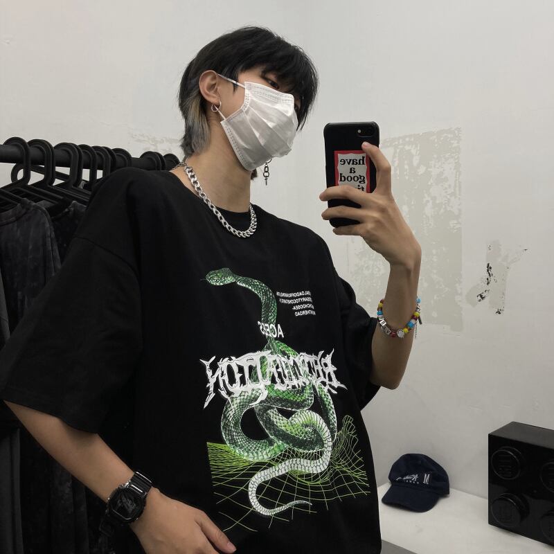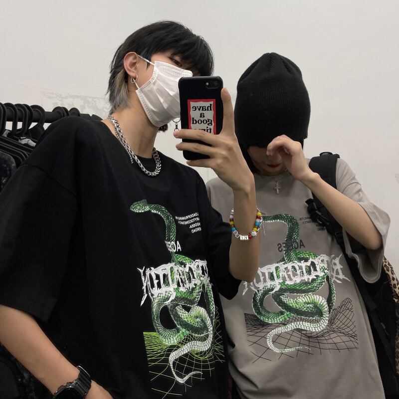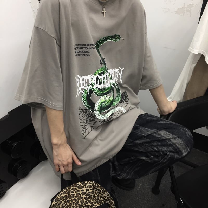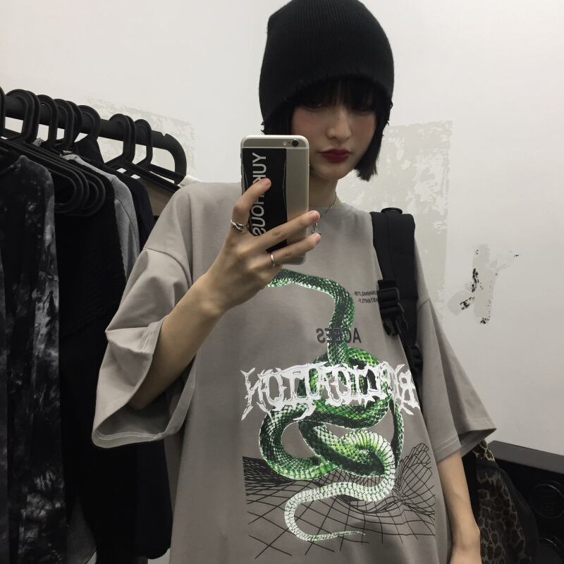Tシャツスプリングレディース韓国ファッショントレンドスタンダードダークプリントルーズトップス レトロ 春物 ボーイズ スタイル デーモン39974885868