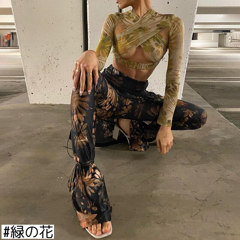 秋物プリント柄トップス スリム オータム ステッチ YU14299549411
