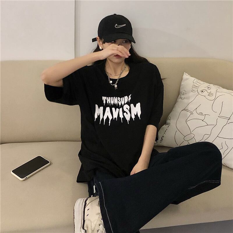 夏服韓国ファッショントレンドラウンドネックTシャツレディースルーズトップス 原宿 夏物 Oネック スタイル CHIL54104743554