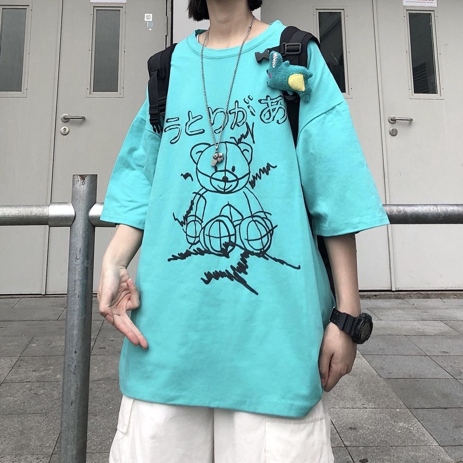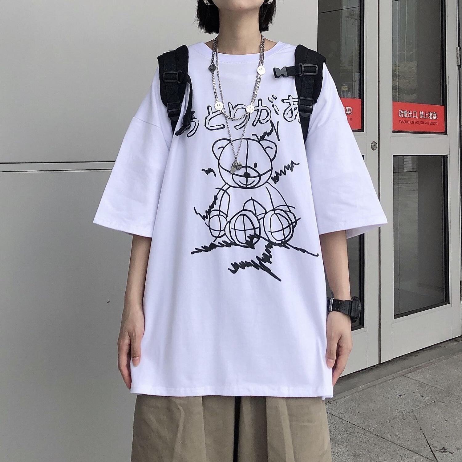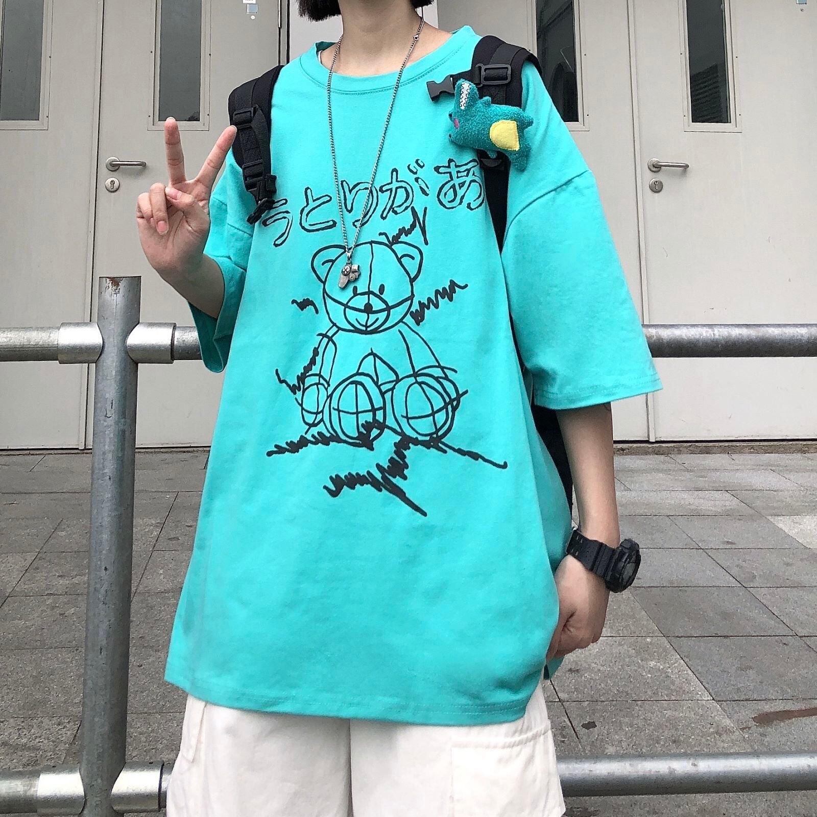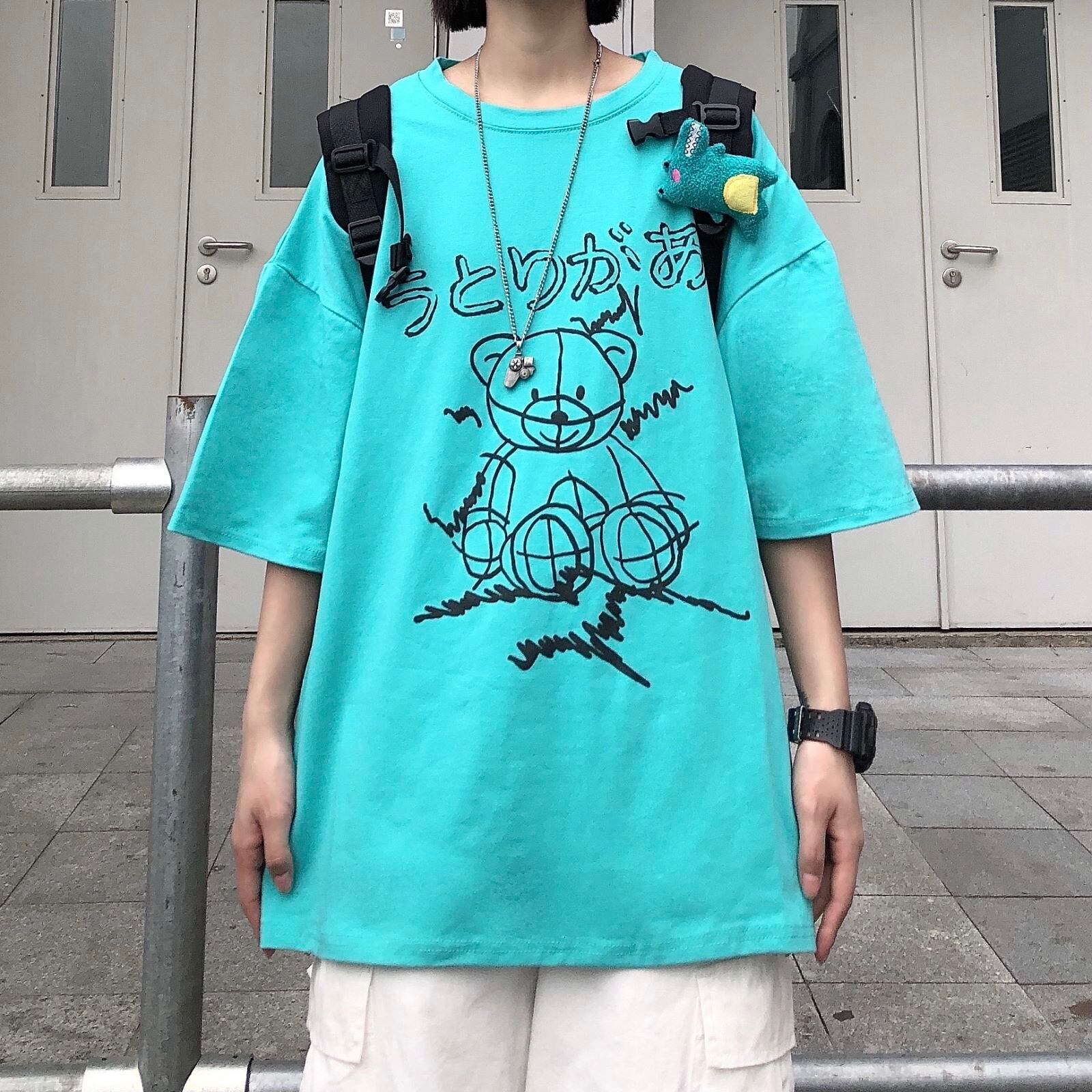 夏服韓国ファッショントレンドスタンダードプリント柄ルーズカジュアルTシャツトップス レトロ 夏物 スタイル CHIL37649530452