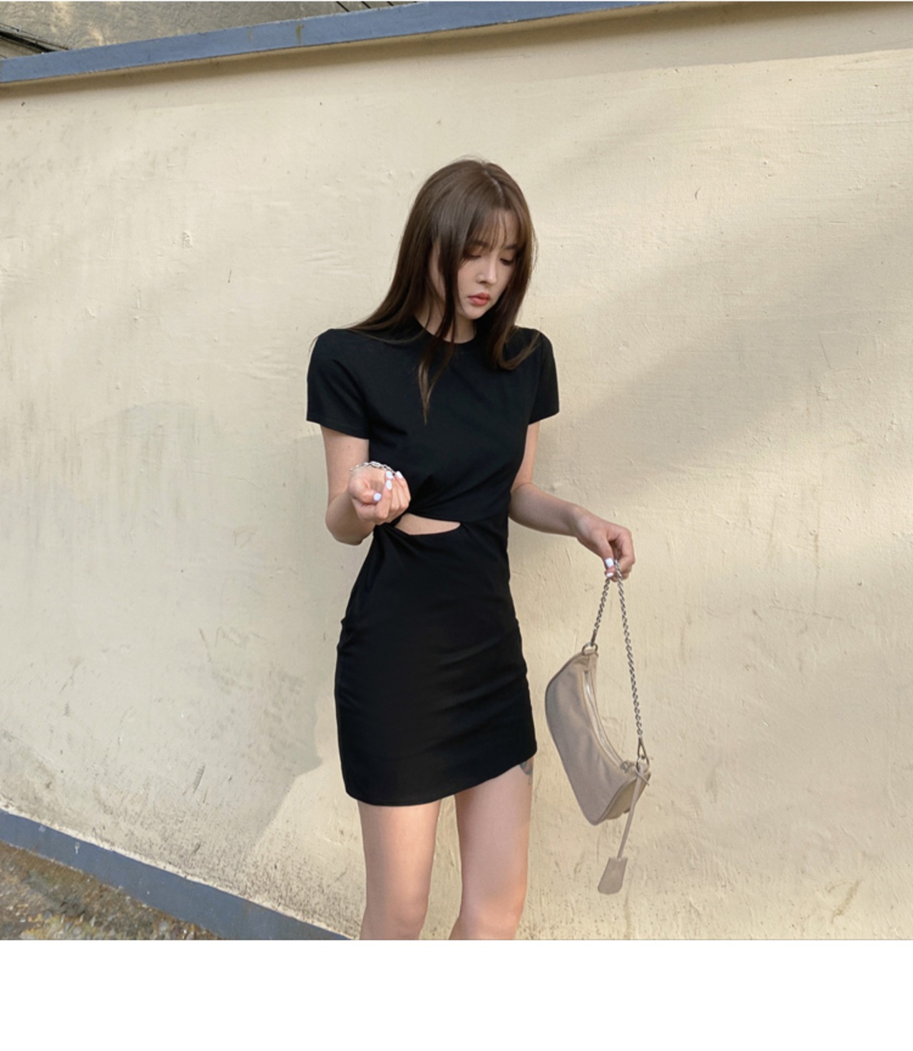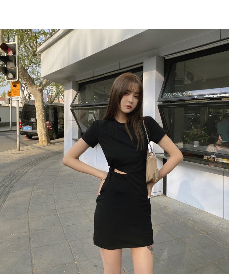 夏服ソリッド カラースリムワンピースウェストスカート レディース 夏物 ソリッドカラー ウエスト CHIL60355416444