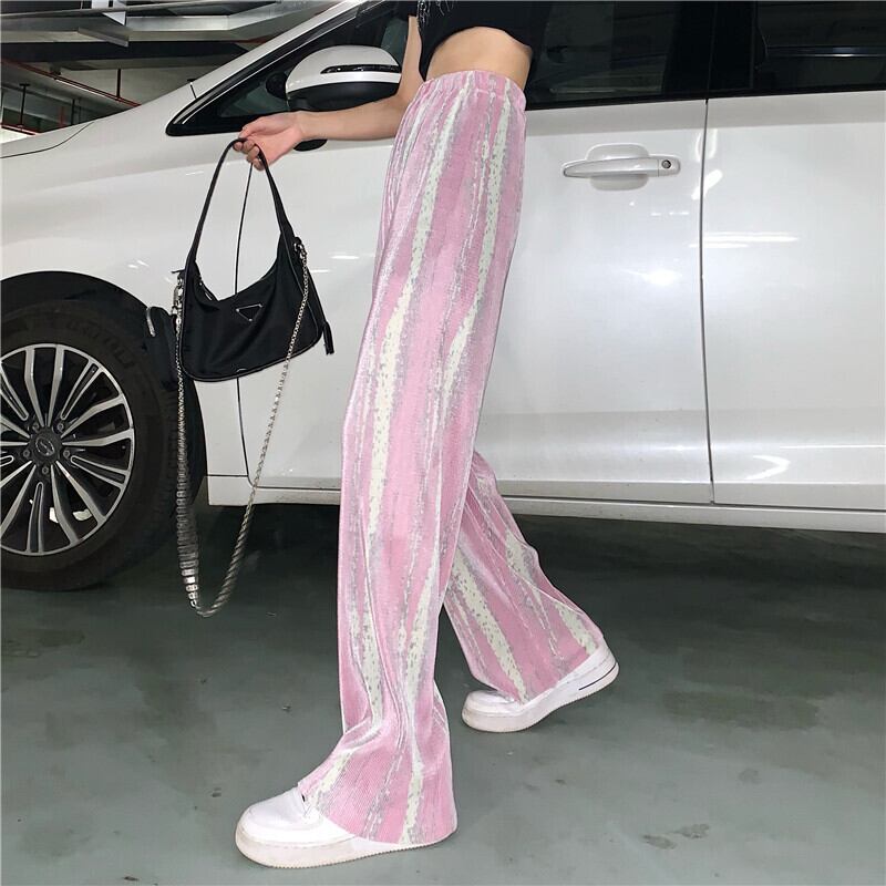 夏服韓国ファッションスタイルハイウェストウェスト薄手ルーズスリムカジュアルパンツ ワイドレッグ 夏物 ワイドパンツ ウエスト CHIL98504036808