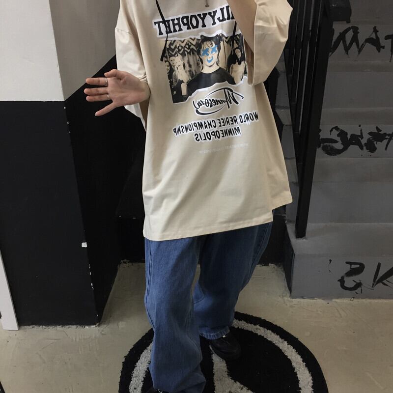レディース夏服韓国ファッショントレンドラウンドネックルーズプリントTシャツトップス 夏物 Oネック スタイル CHIL38644931639