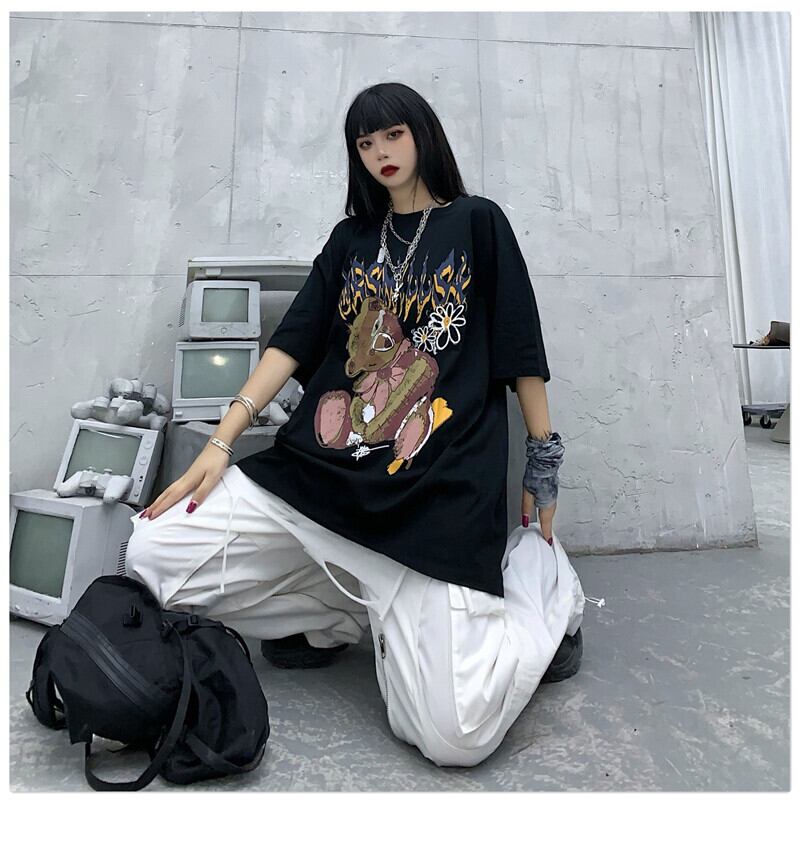Tシャツレディース夏服韓国ファッショントレンドプリント柄ルーズブラックトップス 夏物 スタイル CHIL84819191770