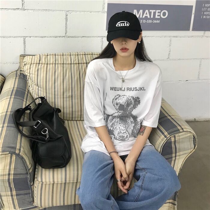 夏服韓国ファッショントレンドプリントルーズTシャツレディーストップス 夏物 スタイル CHIL28624367902