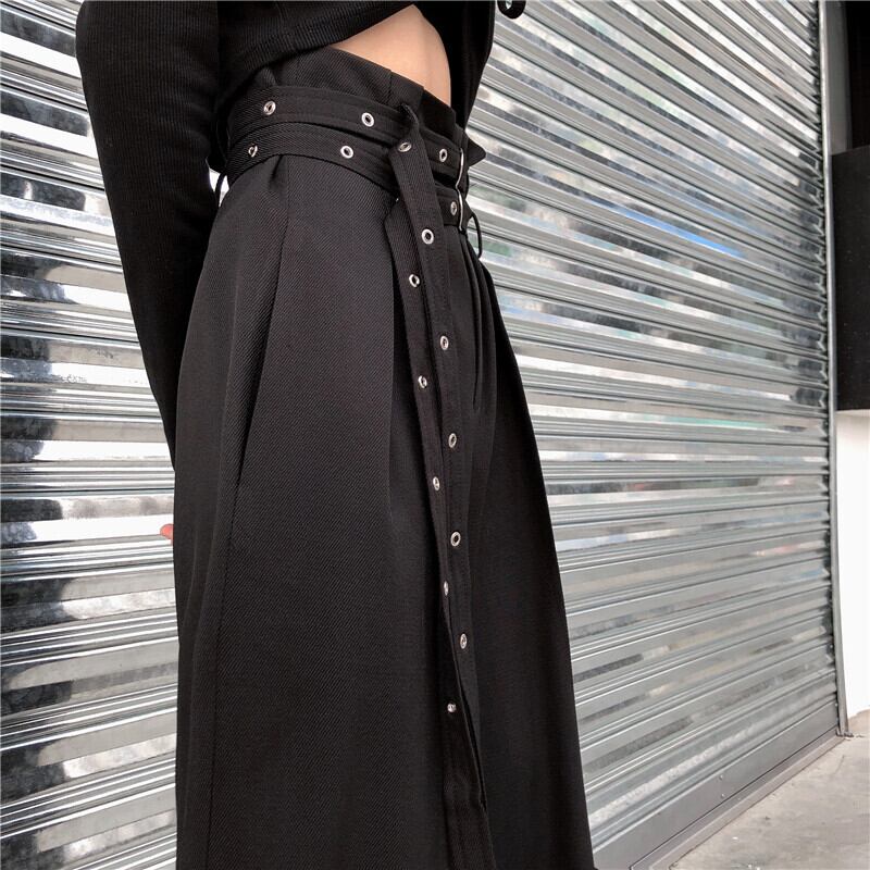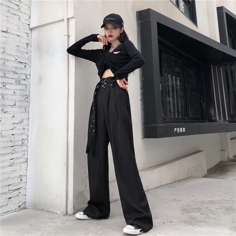 パンツ レディース夏服韓国ファッショントレンドスタンダードブラックカジュアルハイウェストウェストルーズワイドレッグ レトロ 夏物 ワイドパンツ スタイル ウエスト CHIL87183908227