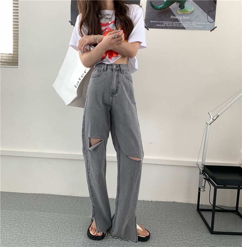 パンツ 夏服ジーンズ 薄手韓国ファッションスタイルルーズハイウェストウェストスリム 夏物 ウエスト CHIL506880806