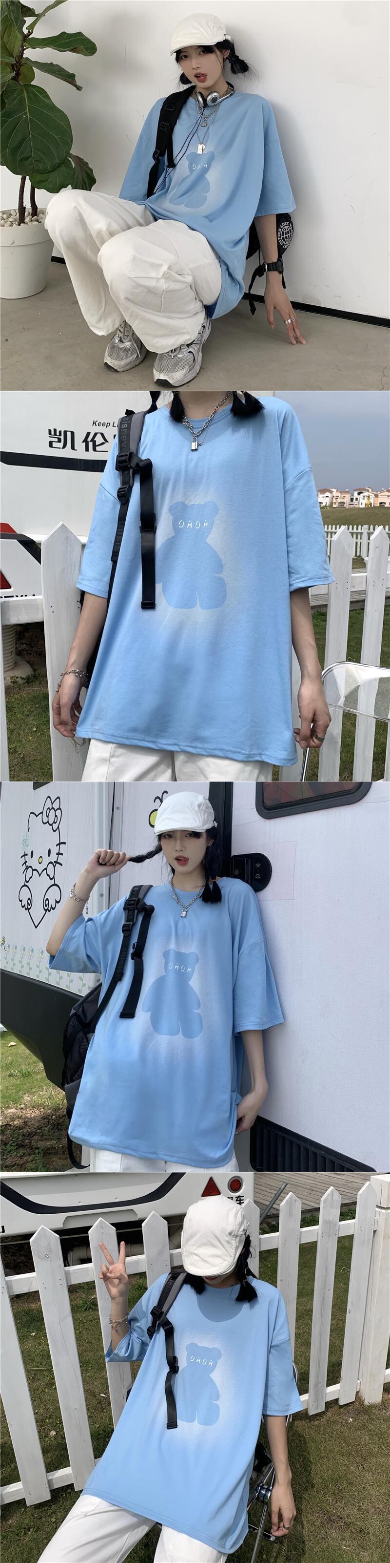 夏服トレンド韓国ファッションルーズブラウス ラウンドネックTシャツメンズレディース 原宿 夏物 Oネック スタイル CHIL65645542792
