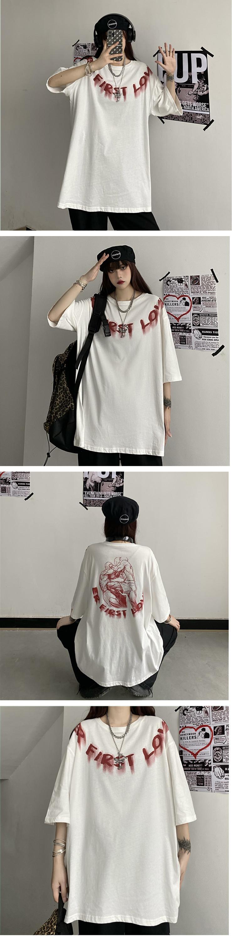 夏服韓国ファッショントレンドプリントルーズ薄手Tシャツレディーストップス ストリート 原宿 夏物 ボーイズ スタイル CHIL84652486925